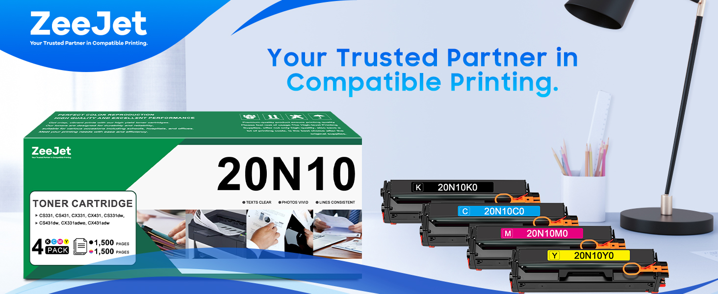 اسم المنتج: استبدال مسحوق الحبر Zeejet CS331 CX331 لحبر طابعة Lexmark CS331 CS431 CX331 CX431 Series 20N10C0 20N10K0 20N10M0 20N10Y0 خراطيش الحبر 4 ألوان، 1500 صفحة