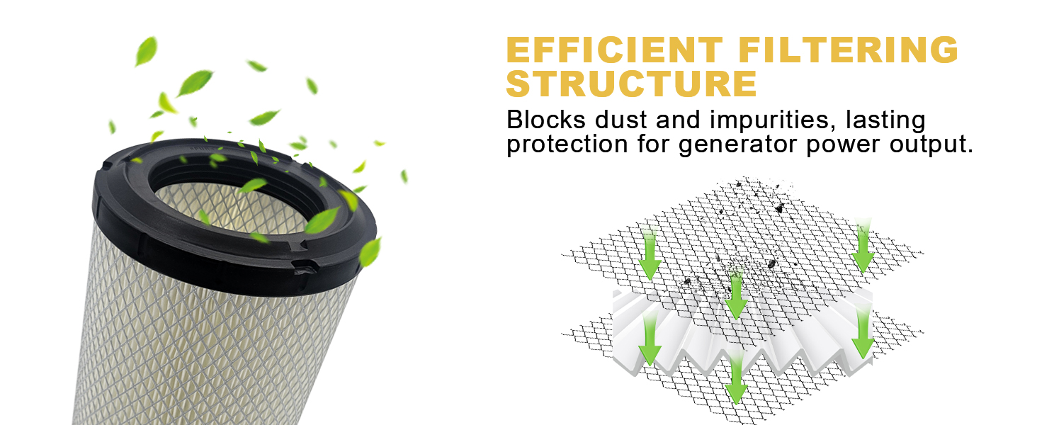 [حماية المحرك]: تعتمد مرشحات الهواء لدينا على ورق فلتر مطوي عالي الكثافة، ومطاط PU متين، وشبكة معدنية مع دعم وقائي مزدوج الطبقة. يمكنها حجب الغبار والجسيمات الموجودة في الهواء بشكل فعال وضمان عمل المحرك بسلاسة.