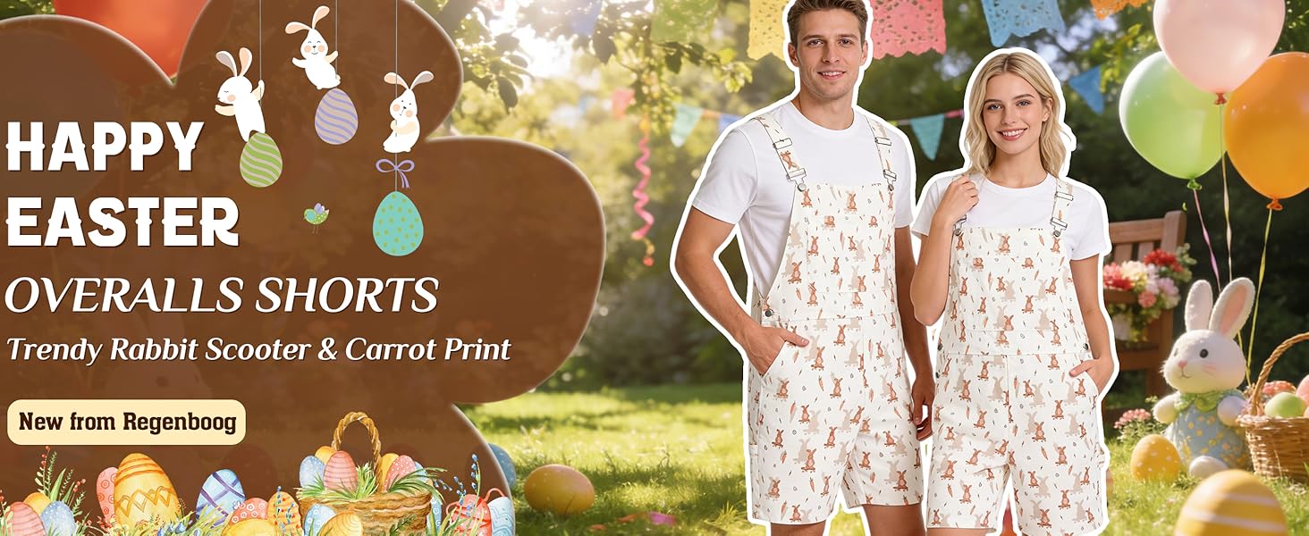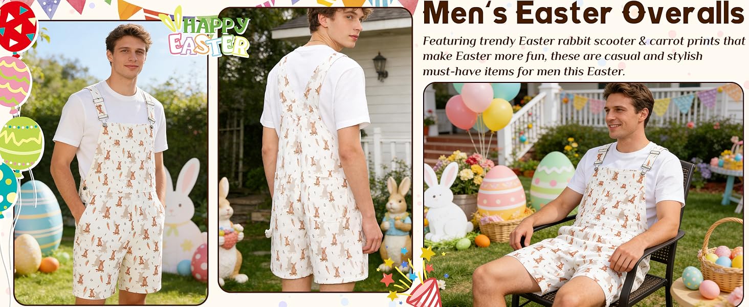 • تصميم أفرول عيد الفصح للرجال: تتميز شورتات عيد الفصح الرجالية بتصميم بسيط وعملي مع مقاس فضفاض لحرية الحركة والراحة طوال اليوم. تأتي مع 6 جيوب عملية عميقة وحلقات تعليق خلفية للفخذ لبيض وأدوات عيد الفصح، بينما تضمن أحزمة الكتف القابلة للتعديل سريعة الفك ملاءمة مريحة وأجواء عطلة احتفالية.