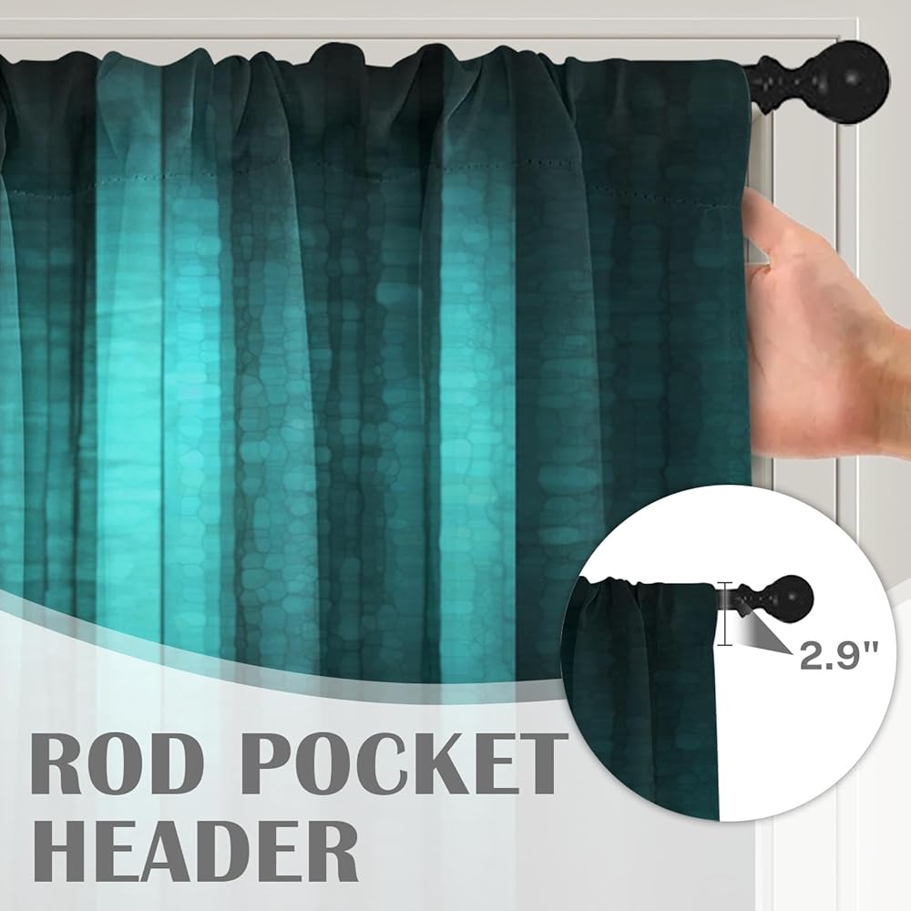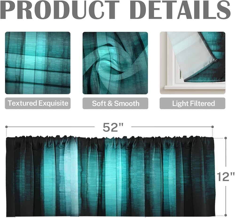 المقاس: ستائر نافذة. القياسات: 12 بوصة عرض × 52 بوصة طول. مع جيب قضيب مقاس 3.2 بوصة يناسب قضبان ستائر أساسية أو زخرفية بقطر يصل إلى 1.6 بوصة. من السهل تعليقها على الستائر