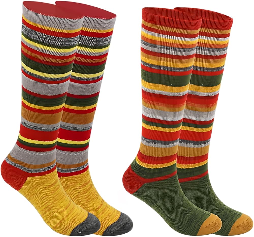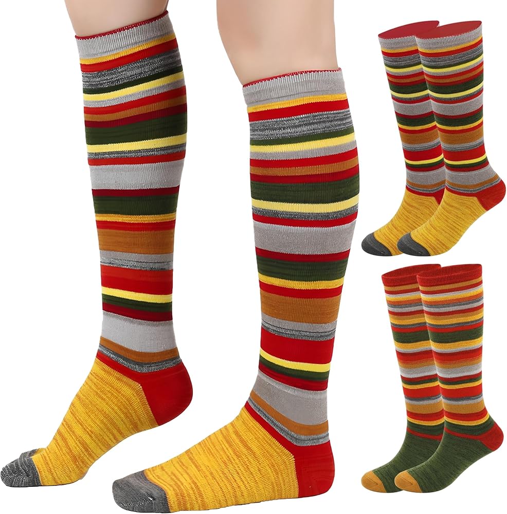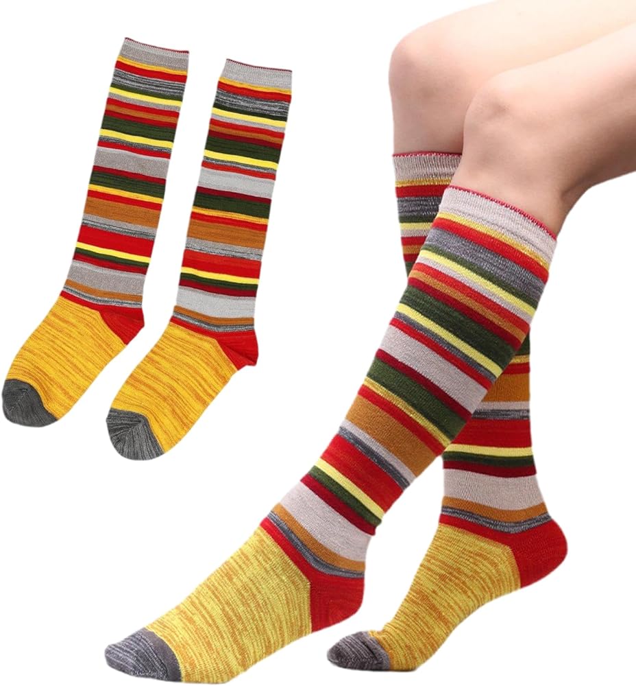 Package Included: 2 Pairs knee high socks for women girls, which are suitable for Spring, Summer, Autumn, Winter. The striped knee high socks fit just below the knee on average height people