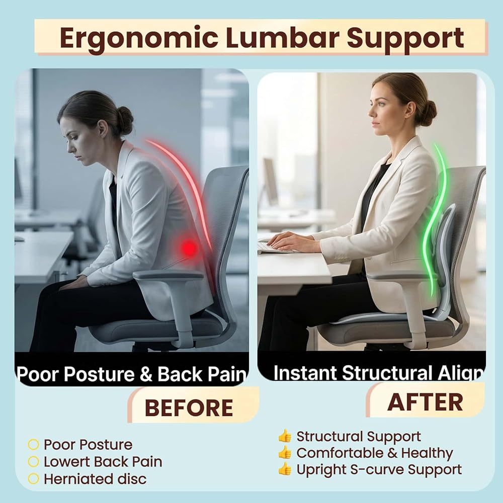 🦴 [STRUCTURAL ERGONOMIC ALIGNMENT, NOT SOFT Cushion] Upgrade your sitting experience with our professional Office Lumbar Curve chair for posture corrector. Engineered with 6mm high-grade PP resin frame, it provides rigid structural support to promote a natural sitting habit. Unlike soft pillows, this Ergonomic Lumbar Support seat stays firm, ensuring your back feels supported during 10+ hour work sessions.