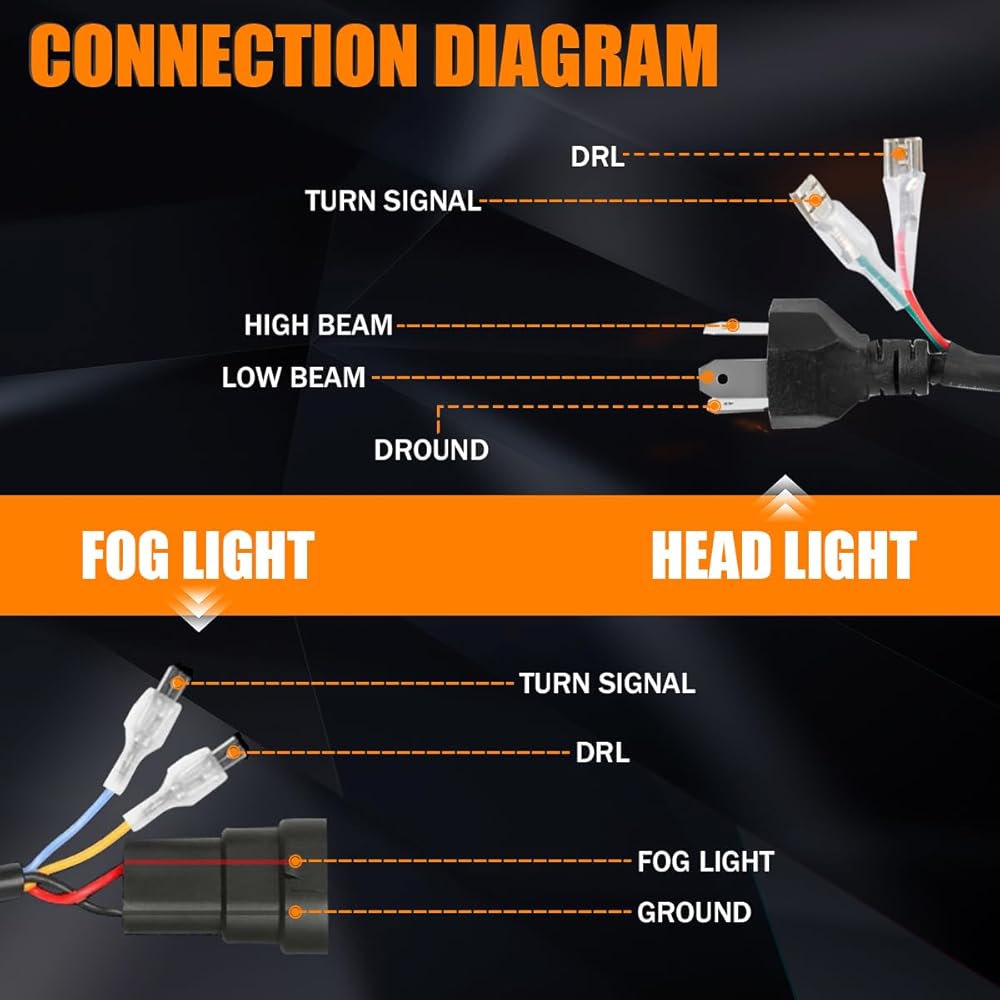 سهل التركيب: مزود بمحول H4 إلى H13، والذي يمكن تركيبه بسرعة وبشكل جيد. يحتاج فقط إلى توصيله بنقطة أسلاك المصباح الأمامي الأصلية في المصنع، ويكون التشغيل مريحًا. يمثل الخط الأحمر إشارة DRL بيضاء على شكل حرف V وإشارة الانعطاف ذات اللون الأصفر. لا يلزم تعديل إضافي. في حالة عدم التوافق، تحتاج إلى شراء كابل محول H4 إضافي متوافق، أو قطع كابل المحول الذي نقدمه إلى أسلاك عارية.