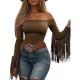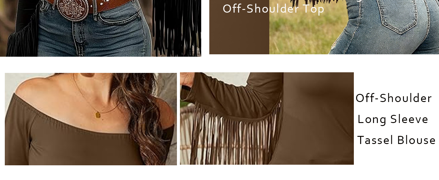 نمط راعية البقر ذات الشراشيب الغربية: ألفتي الأنظار مع هذا التصميم ذو الشراشيب الذي يعطي على الفور لمسة غربية جريئة. مثالية كقميص راعية البقر للحفلات الموسيقية ومسابقات رعاة البقر والمهرجانات والحانات الريفية والحفلات.