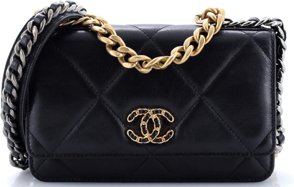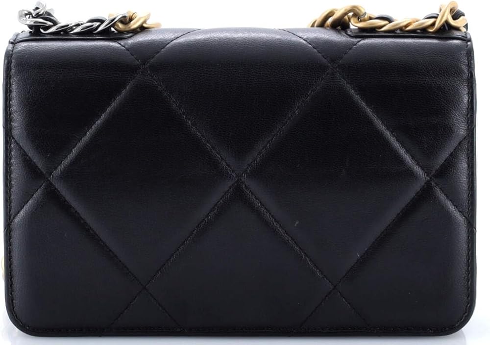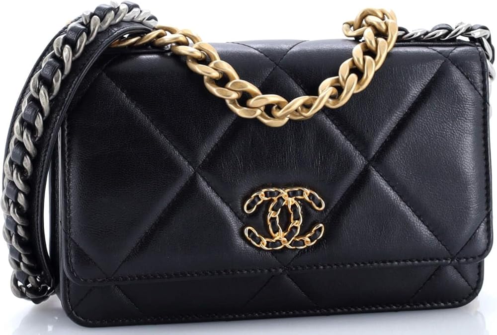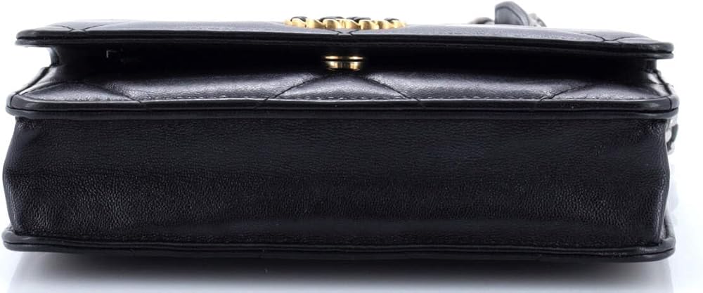 محفظة CHANEL Pre-Loved 19 على سلسلة من جلد الحمل المبطن، باللون الأسود
