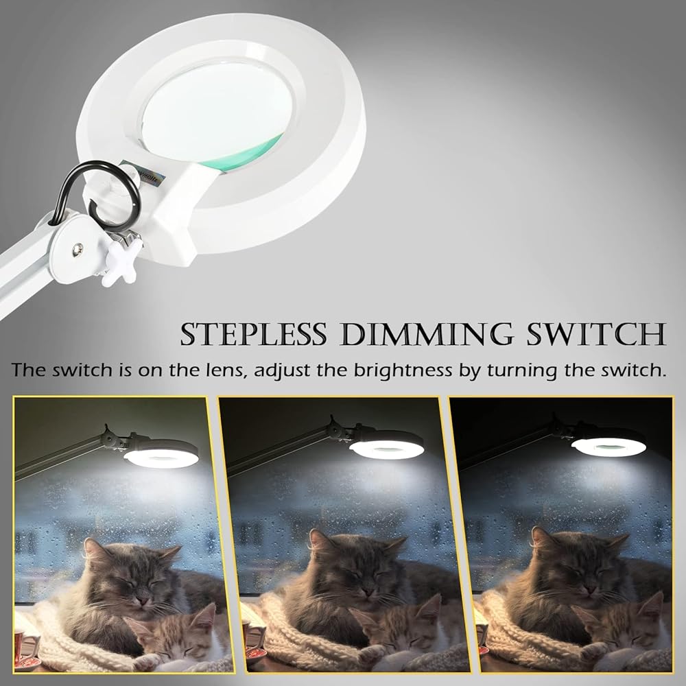 [انظر التفاصيل الصغيرة بسهولة]: تم تصميم هذا المصباح المكبر لأي شخص يركز على العمل الوثيق، حتى مع مشاكل الرؤية مثل شيخوخة العيون أو الضمور البقعي. يشتمل هذا المصباح على مفتاح باهت مدمج حتى تحصل على الضوء المناسب تمامًا. سوف تعمل العدسة الزجاجية الحقيقية ذات 8 ديوبتر مقاس 5 بوصات على تكبير كل ما تعمل عليه بنسبة تصل إلى 5X/500%.