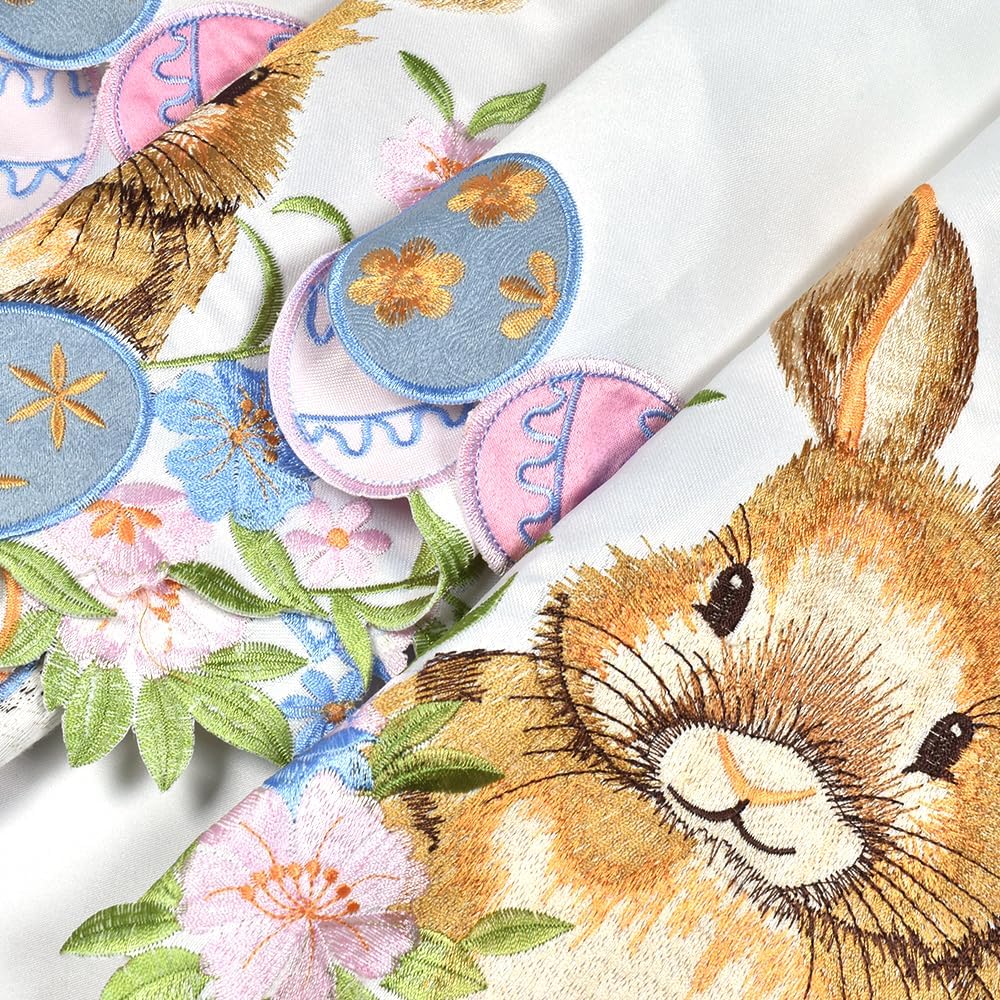 خامة فائقة: ستارة ستارة عيد الفصح مصنوعة من نسيج البوليستر بحرفية تطريز رائعة، ومتينة، ومقاومة للاهتراء. يمكن غسلها في الغسالة بالماء البارد وتبقى دون تغيير أثناء الغسيل ولا تبهت، وهي مكواة بخار صغيرة.