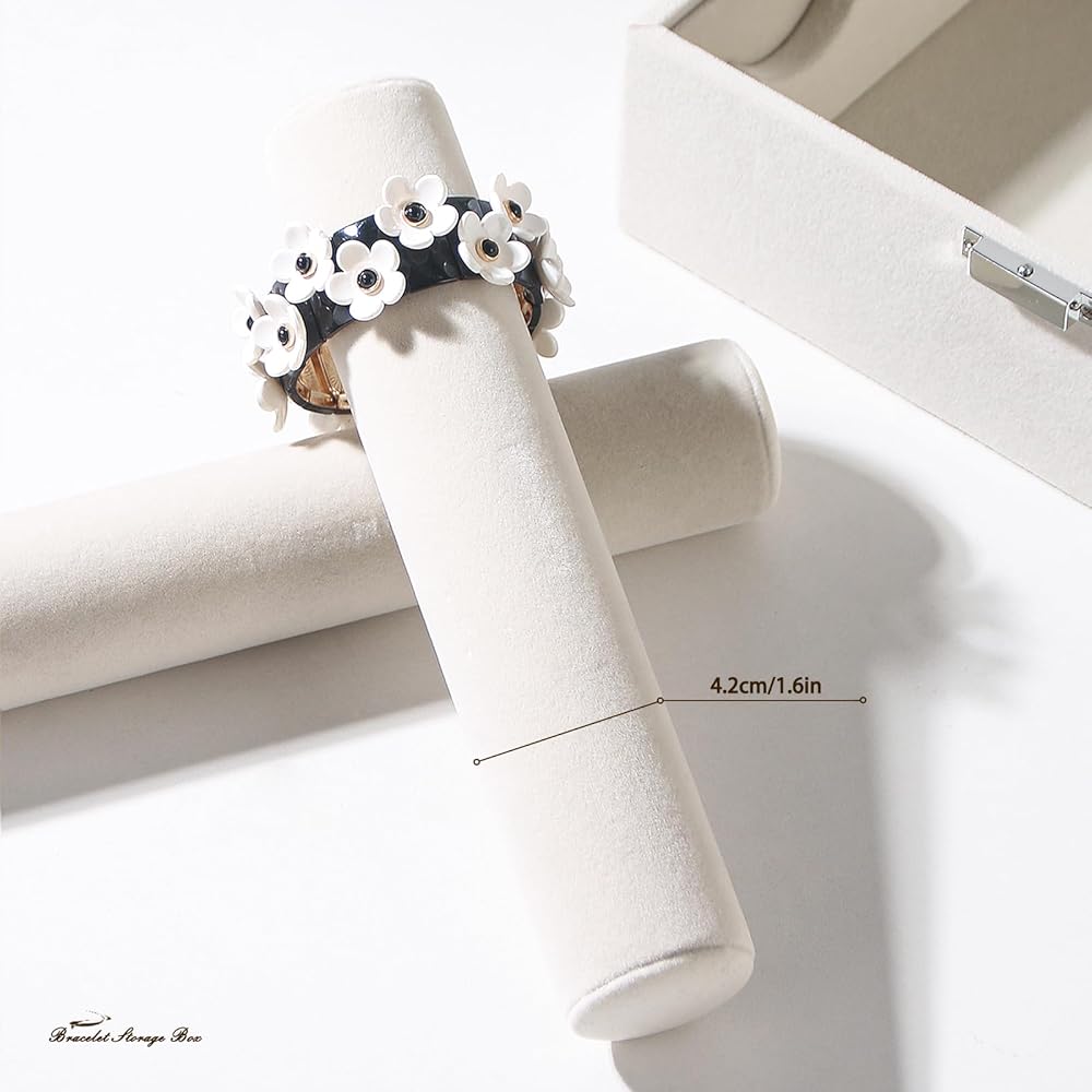 • Dimension: 9.5 x 6.8 x 3.4”,the diameter of the roll bar is 1.6 inches. It suits all sizes of bracelets and bangles, with enlarged storage box space to accommodate your jewelry in a superior condition