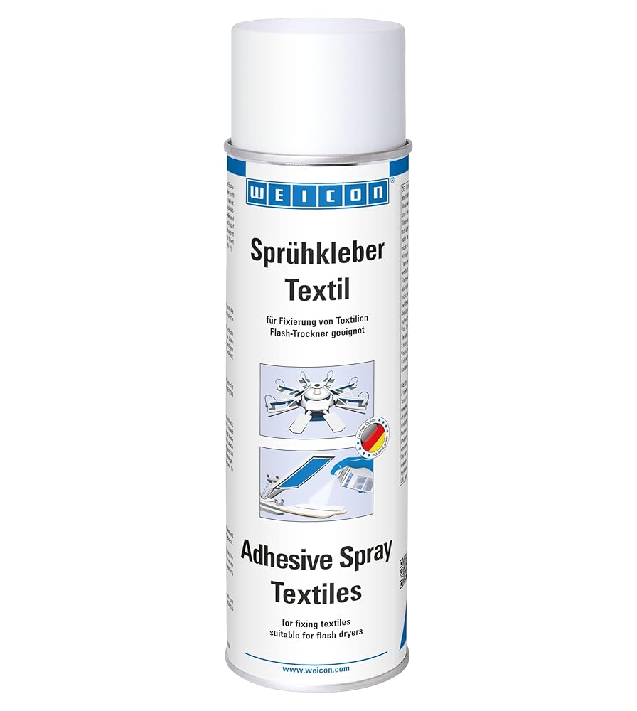 WEICON Adhesive Spray Textiles (16.9 fl oz) is a water-resistant, silicone-free spray adhesive for bonding textiles and fabrics. It provides strong yet flexible adhesion without stiffening, warping, or leaving marks. Suitable for all fabrics such as cotton, linen, silk, polyester, felt, and denim. Ideal for DIY projects, costumes, upholstery repairs, screen printing preparation, and large-area applications. The adhesive holds textiles securely in place and allows clean processing. Application: Spray onto both surfaces, allow to flash off for 5–10 minutes (finger test), join parts, and press firmly.