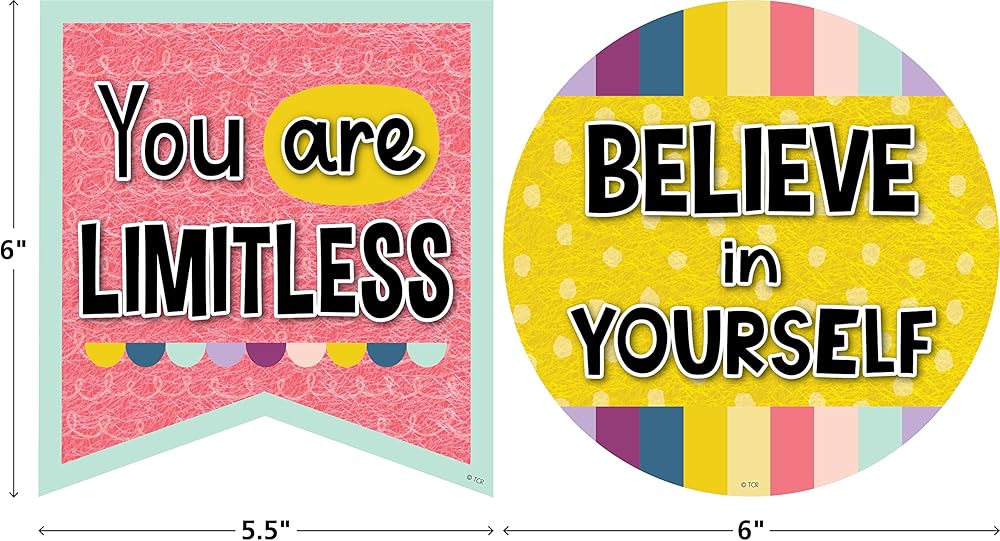 • EASY TO USE & VERSATILE: Pre-cut and ready to display, these inspirational messages can be easily arranged into decor that builds confidence. Mix and match with coordinated bulletin board backdrops, border trim, posters, and other decor to create a cohesive space that feels friendly for students. Use in affirmation stations, or to add encouraging notes around learning centers. Made for teachers who love the little details, these accents add an eye-catching touch to one-of-a-kind SEL displays.