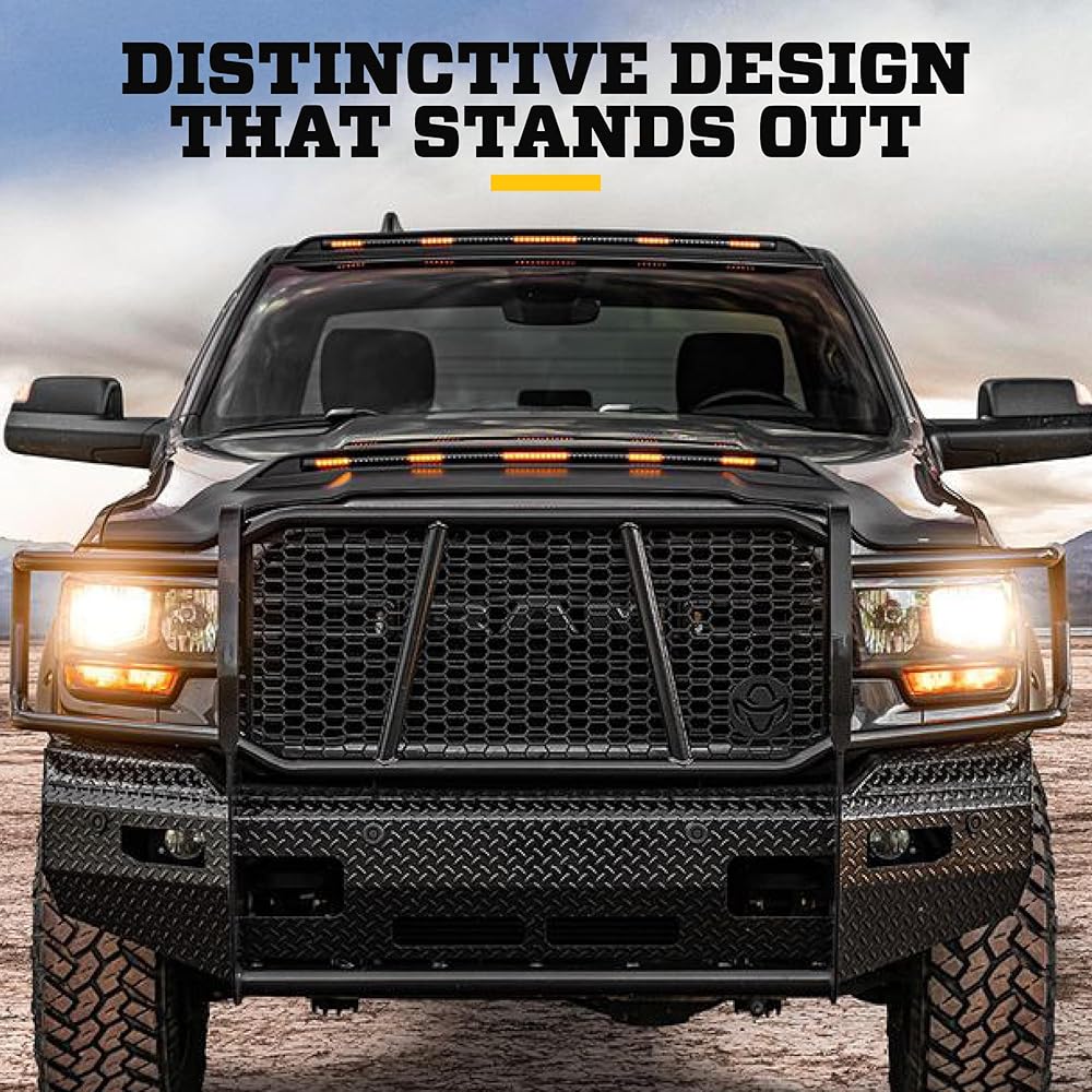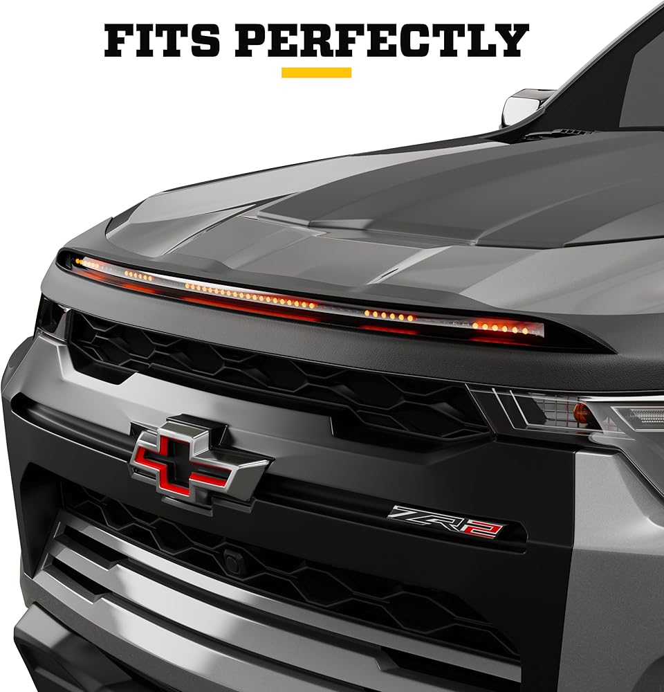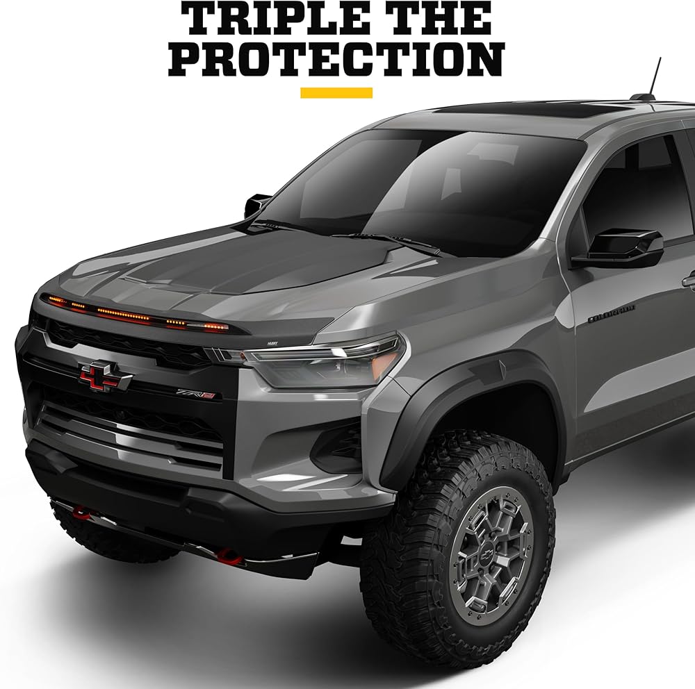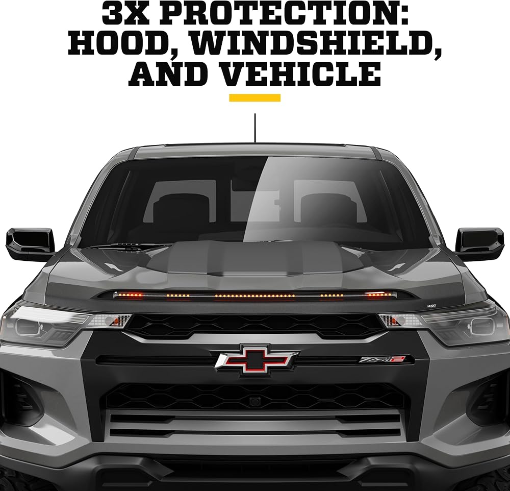 3x PROTECTION: HOOD, WINDSHIELD, AND VEHICLE. | Built to guard your hood and windshield from rocks, chipping, and road wear, and to protect you with increased vehicle visibility. Our AeroLift design redirects debris up and over your glass while integrated LED lighting improves your visibility to other drivers.