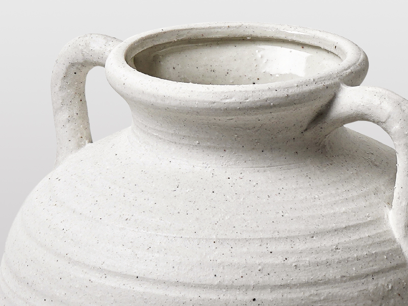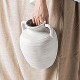 مزهرية ذات مقبض مزدوج: مصنوعة يدويًا من الطين الطبيعي، تتميز هذه المزهرية البسيطة بمقابض عضوية مزدوجة الأذن وملمس حلزوني مهدئ لإضفاء لمسة من الأناقة الطبيعية. يرجى ملاحظة أن الاختلافات الطفيفة في اللون والملمس هي جزء من طابعها اليدوي الفريد. في حالة استلامك منتج به أي ضرر أو عيب أو مخاوف تتعلق بالجودة، يسعدنا تقديم خدمة ما بعد البيع
