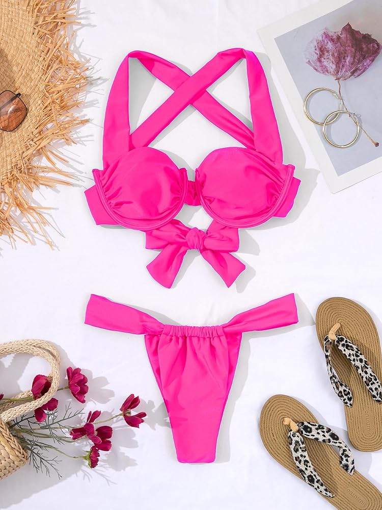 ملابس سباحة علوية من Underwire --- بدلة سباحة بكيني أساسية لطيفة! أسلوب رائعتين. توفر حشوة الجزء العلوي من البكيني المزودة بسلك داخلي مزيدًا من الدعم لثديك ولا تنزلق الأكواب، كما أنها تشكل مجموعة رائعة مع ظهر متقاطع تشعر بالتأكيد بالدعم من حمالة الصدر العادية.