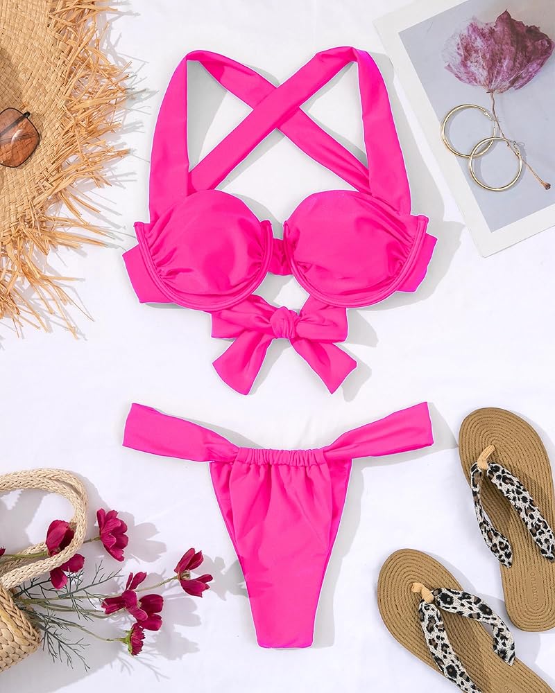بيكيني برباط من الخلف --- بدلة استحمام مثيرة للنساء فريدة من نوعها متقاطعة مع ربطة عنق وعقدة من الخلف تظهر تمامًا منحنيات جسمك، مما يجعل صورة أنثوية أنيقة وعصرية! إذا كنت تبحث عن الإثارة والمرح، فإن بدلة السباحة النسائية هذه هي البدلة المناسبة لك!