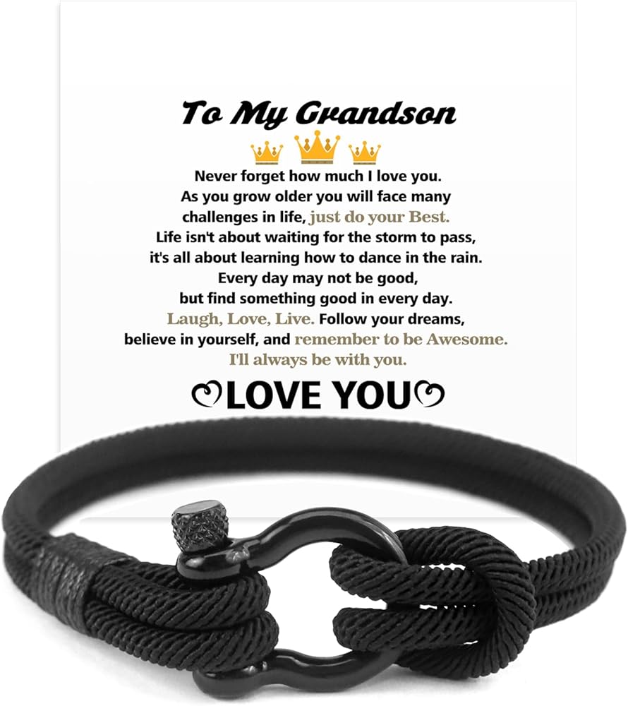 Unique Design—The interface of the double rope is tied with a thin rope to symbolize a closer connection. Gifts for men, birthday gifts for men, birthday gifts, graduation gifts, gifts to my grandson, grandson gifts from grandma,grandson gifts from grandpa, grandson bracelet, gift for grandson, inspirational gifts for men, grandson gifts, mens gifts for birthday and to my grandson bracelet