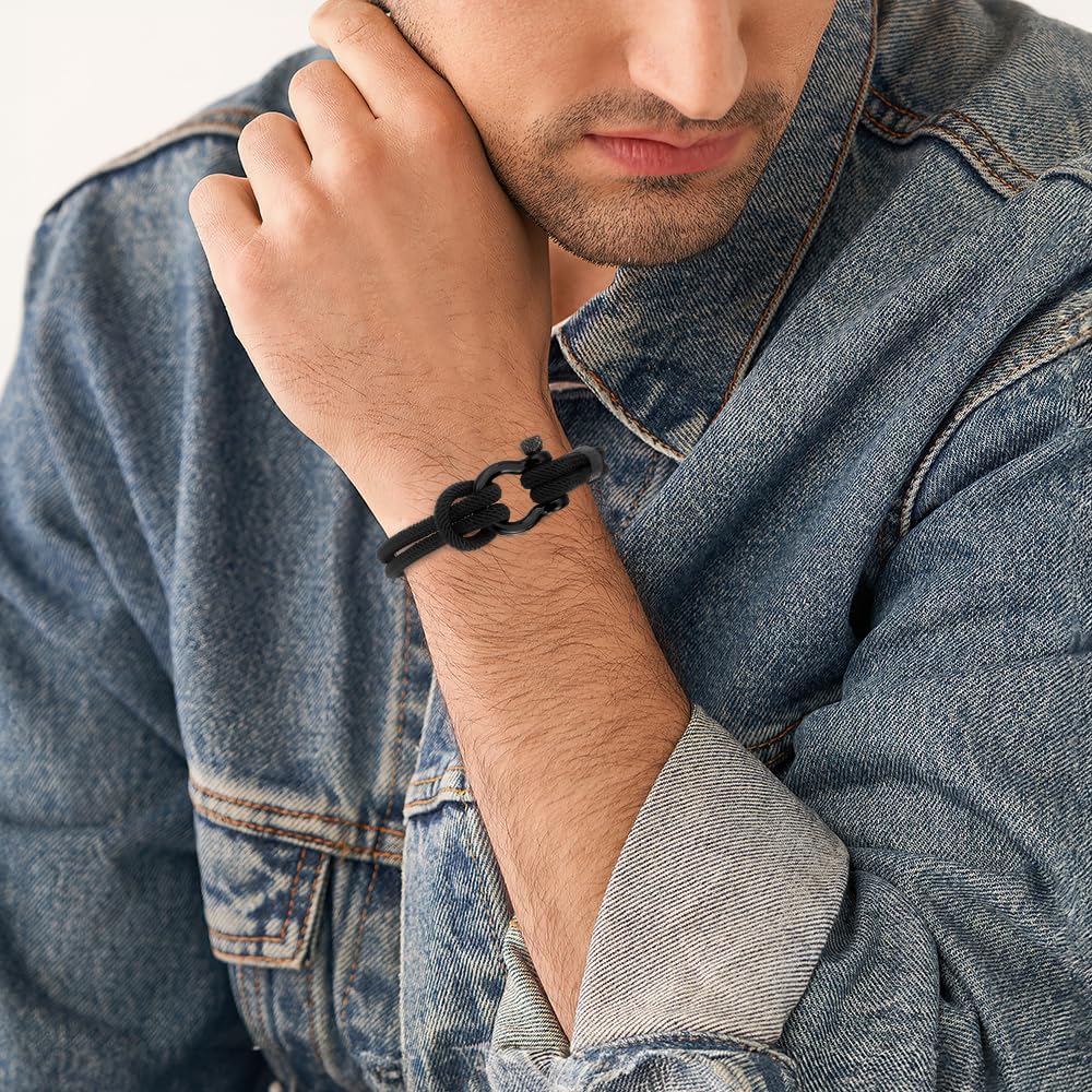 Bracelet for Teens—This mens bracelet is made of high quality braided rope and stainless steel buckle.The well-made nylon rope makes the bracelet strings turdy and comfortable for daily wear. The way to wear it is as follows. First unscrew the screws,and put the bracelet on, last thread the screw through the buckle and rope to tie them together. The 8.26 inches length is suitable for most people's wrists