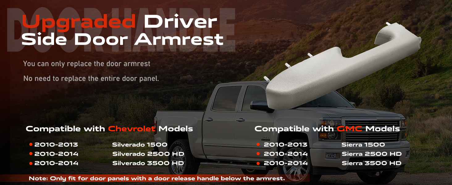 • التوافق: مسند الذراع الجانبي للسائق متوافق مع 2010 - 2013 شيفروليه سيلفرادو 1500، 2010 - 2014 سيلفرادو 2500 HD، 2010 - 2014 سيلفرادو 3500 HD، 2010 - 2013 جي إم سي سييرا 1500، 2010 - 2014 سييرا 2500 HD، 2010 - 2014 سييرا 3500 اتش دي