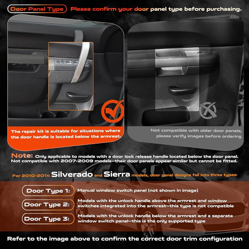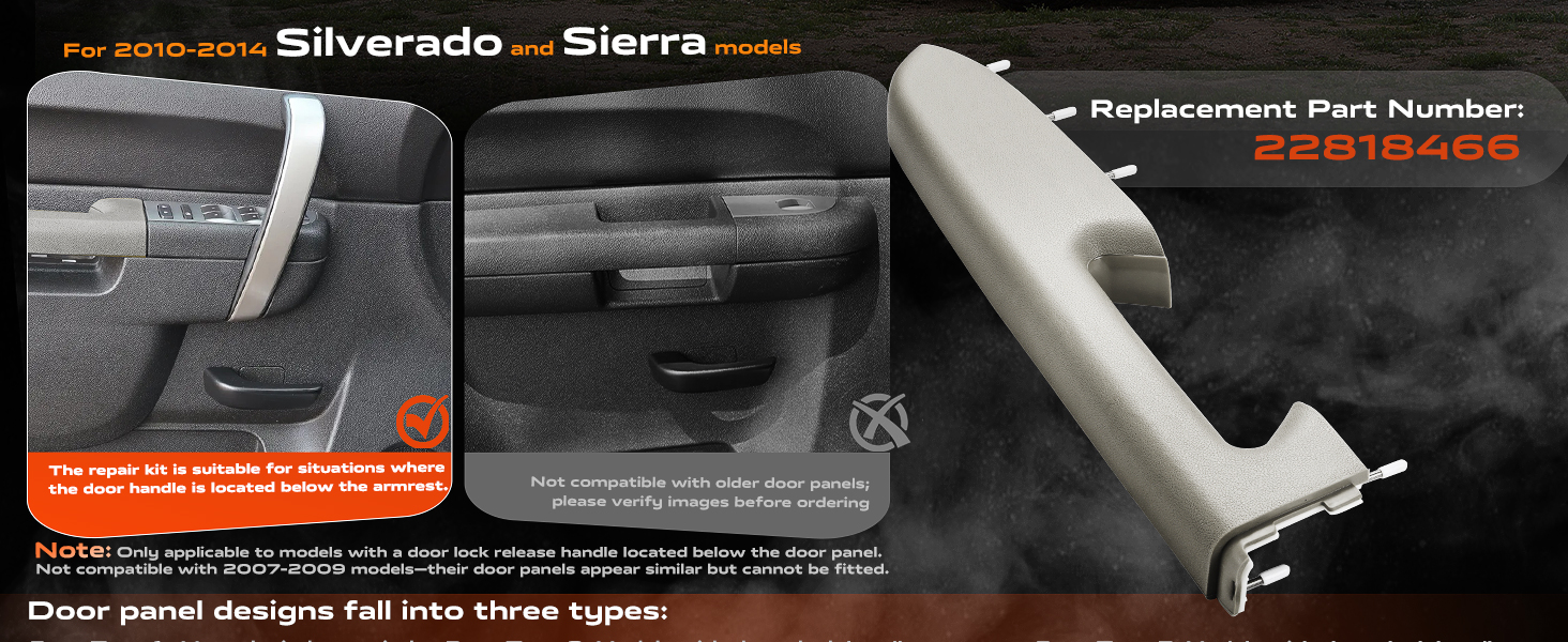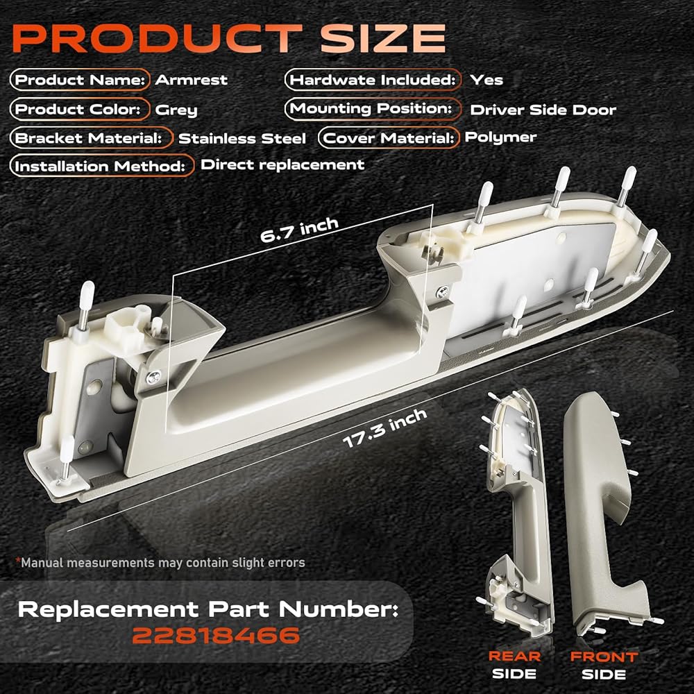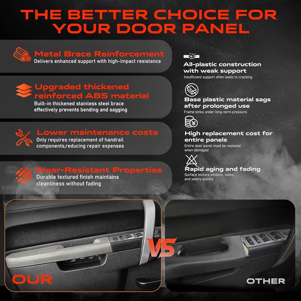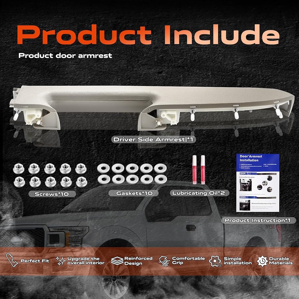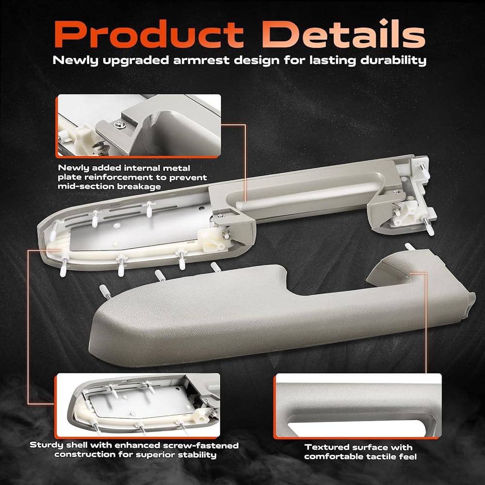 • سهولة الاستبدال: ما عليك سوى تبديل مجموعة مقبض لوحة الباب. استخدم فتحات التثبيت الأصلية للتثبيت المباشر بمسامير - لا حاجة لاستبدال لوحة الباب بأكملها. ملحوظة: تم تصميم مجموعة مسند الذراع هذه خصيصًا للطرز التي تتميز بمقبض سحب مفتوح أسفل مقبض لوحة الباب
