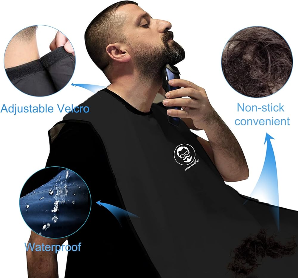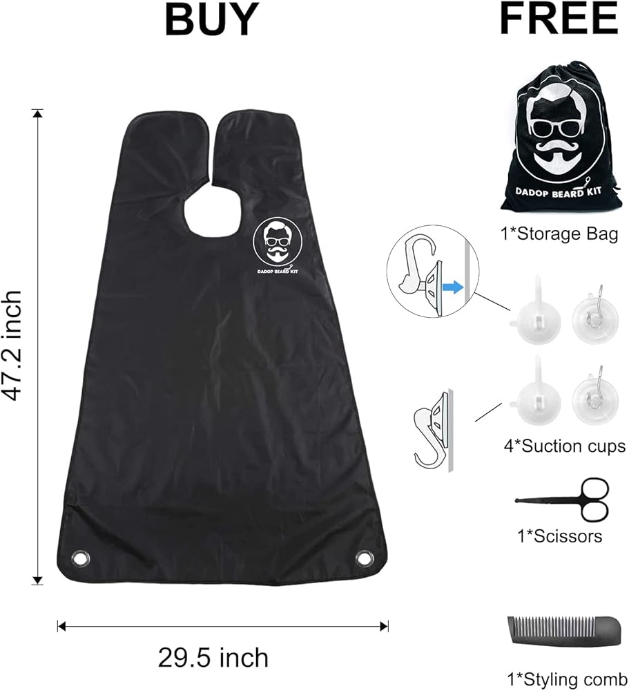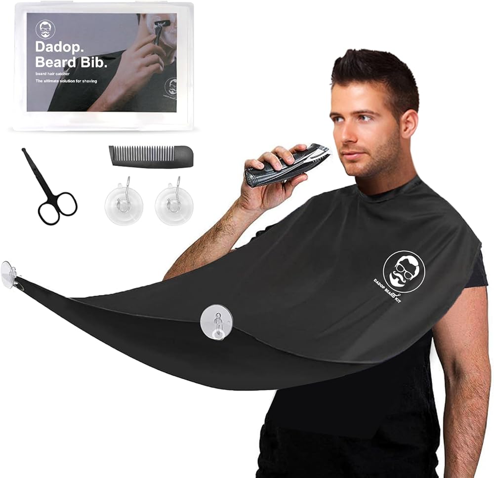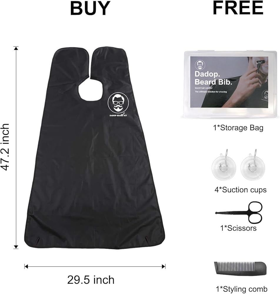 طقم مريلة اللحية من دادوب، لالتقاط شعر اللحية، مقاوم للماء وغير لاصق للرجال، مريلة حلاقة للرجال، مع 4 أكواب شفط، ومقص شعر الأنف، ومشط اللحية وحقيبة محمولة، أفضل الهدايا للزوج.