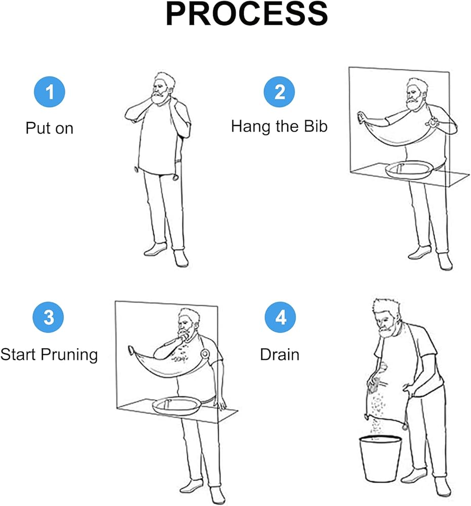 • كيفية الاستخدام: فقط قم بلف مريلة اللحية هذه حول رقبتك، واضبط محيط رقبة الفيلكرو، ثم قم بلصق الزوايا السفلية لكوبي الشفط على المرآة، وقم بتعليق الفتحتين المعدنيتين في الجزء السفلي من مريلة اللحية على المرآة. أكواب الشفط، بحيث تشكل كيسًا شبكيًا على شكل قوس لحمل الحطام الذي تقوم بقصه. بعد التشذيب، ما عليك سوى إزالة مريلة اللحية من المرآة وإلقاء الشعر المشذب في سلة المهملات، كما يمكن غسله بسهولة.