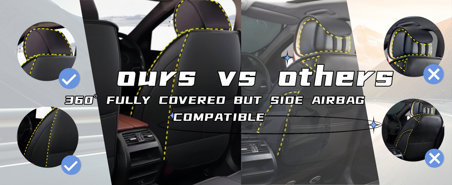 تصميم خاص: يختلف عن أغطية المقاعد الأخرى، يتضمن هذا المنتج أحدث تصميم: مسند الرأس وجانب المقعد مغطى بالكامل بزاوية 360 درجة، ولا يوجد ضمادة مرئية. قم بتحسين مظهر سيارتك على الفور باستخدام هذه الأغطية.