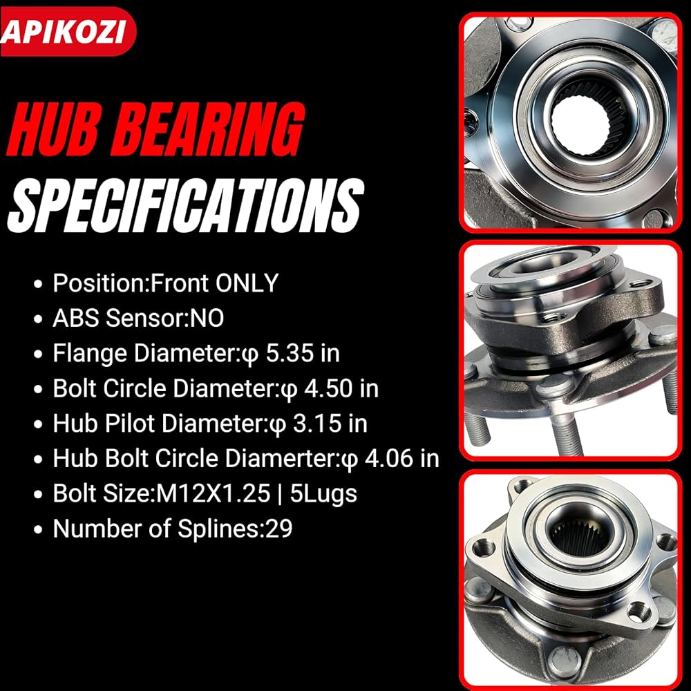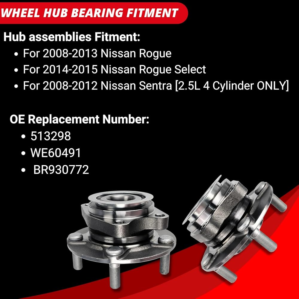 2 قطعة 513298 مجموعة محور العجلة الأمامية تناسب نيسان روج 2008-2013، لروج سيليكت 2014-2015، لسنترا 2007-2012، 5 العروة ث/ABS