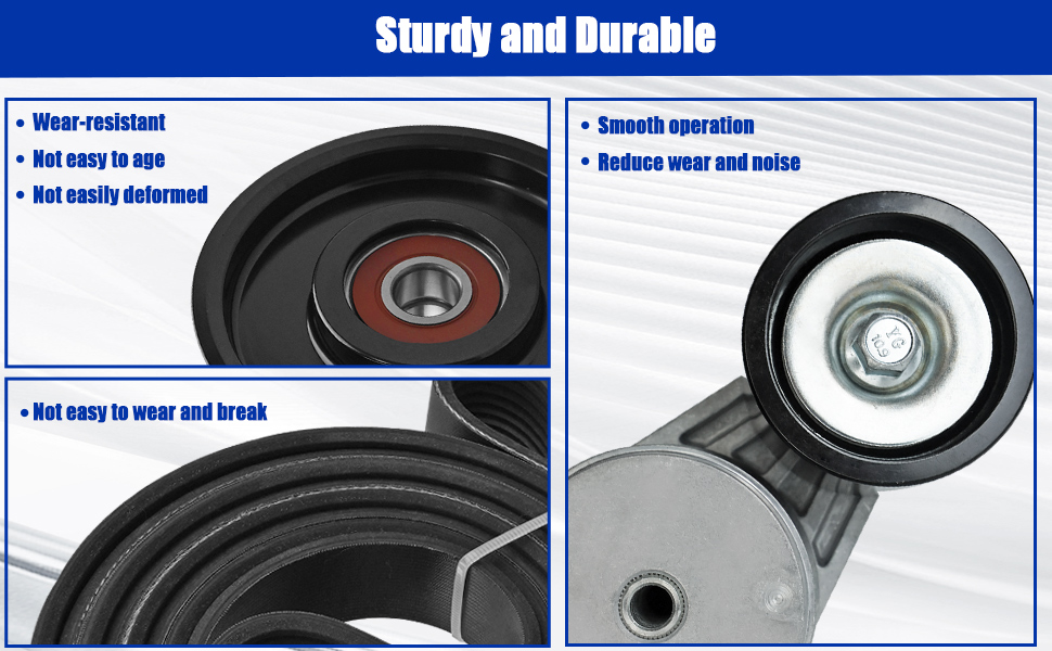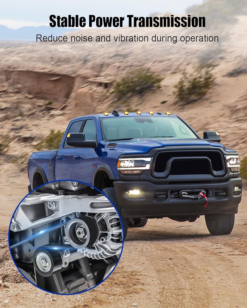 نقل الطاقة المستقر: تحافظ مجموعة شد الحزام 38285 على نقل الطاقة المستقر لملحقات المحرك، حتى تتمكن السيارة من العمل بشكل طبيعي وتقليل الضوضاء والاهتزاز أثناء التشغيل، وتحسين راحة القيادة