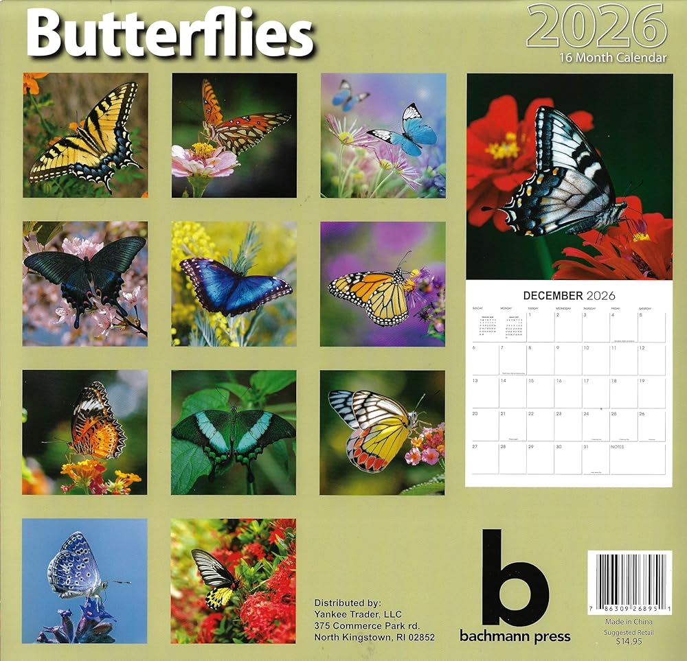 2026 تقويم حائط كامل الحجم للفراشات للتخطيط والجدولة والتنظيم