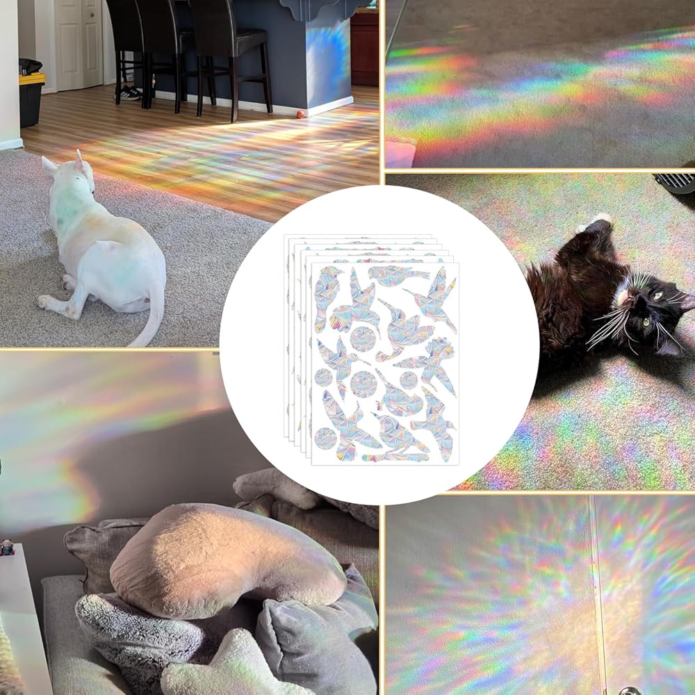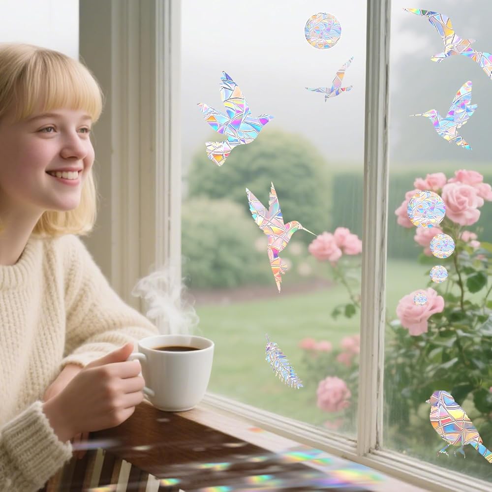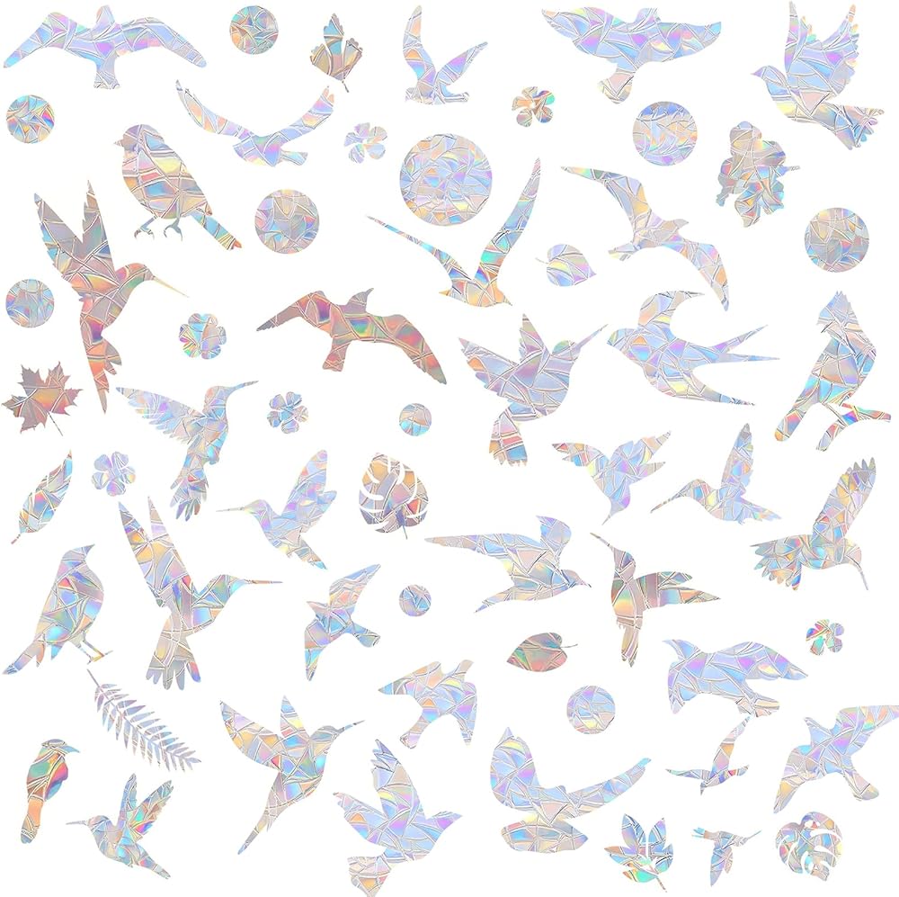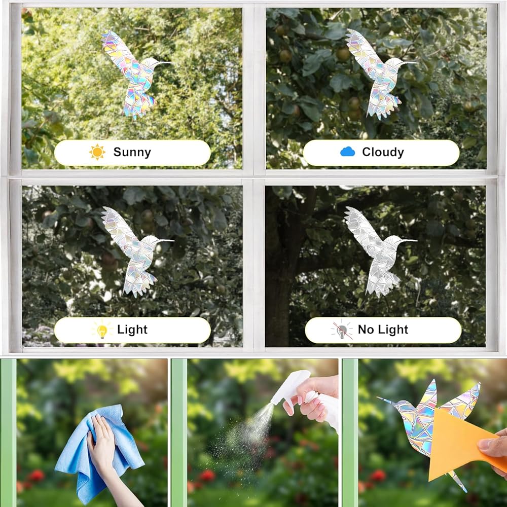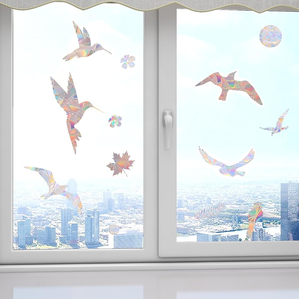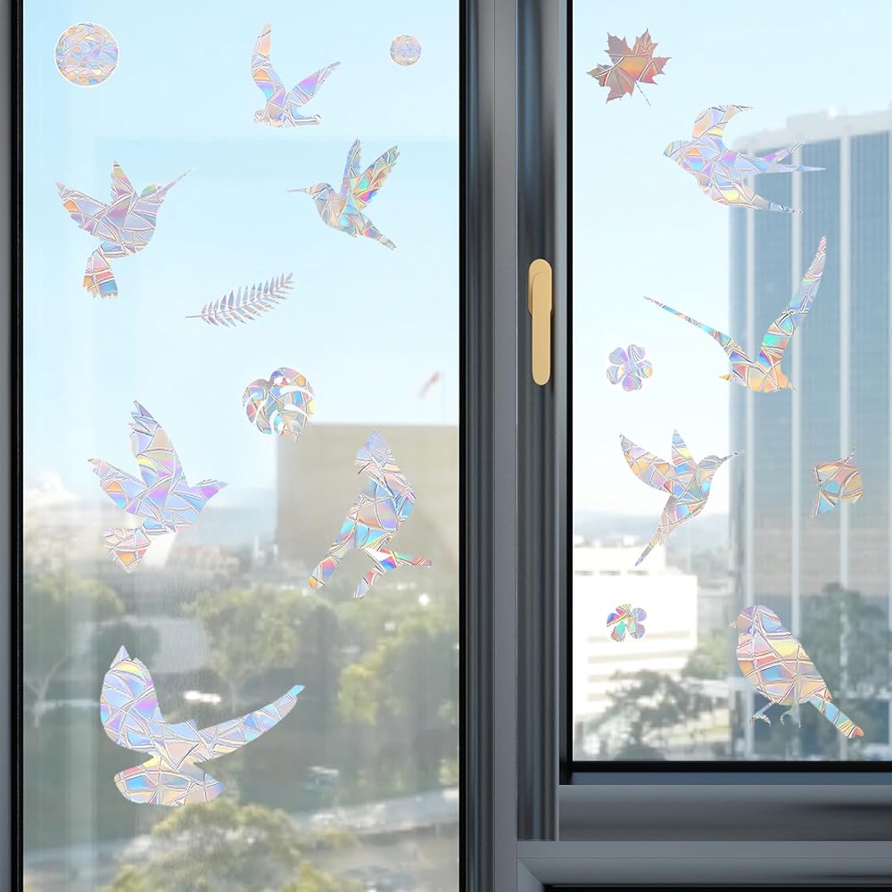 62 decorative window decals designed to prevent bird strikes, featuring beautiful Hummingbird Style designs and Rainbow Sun Catcher Stickers for added aesthetic appeal.