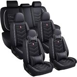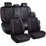 أغطية مقاعد السيارة 6 مقاعد لسيارة فولفو XC90 2003-2025، أغطية وسائد جلدية متينة مقاومة للماء، واقي مقعد بتغطية كاملة قابلة للتنفس (قياسي، أسود وأحمر) in Kuwait