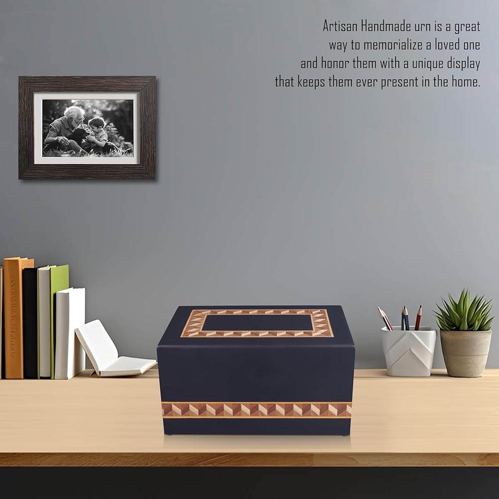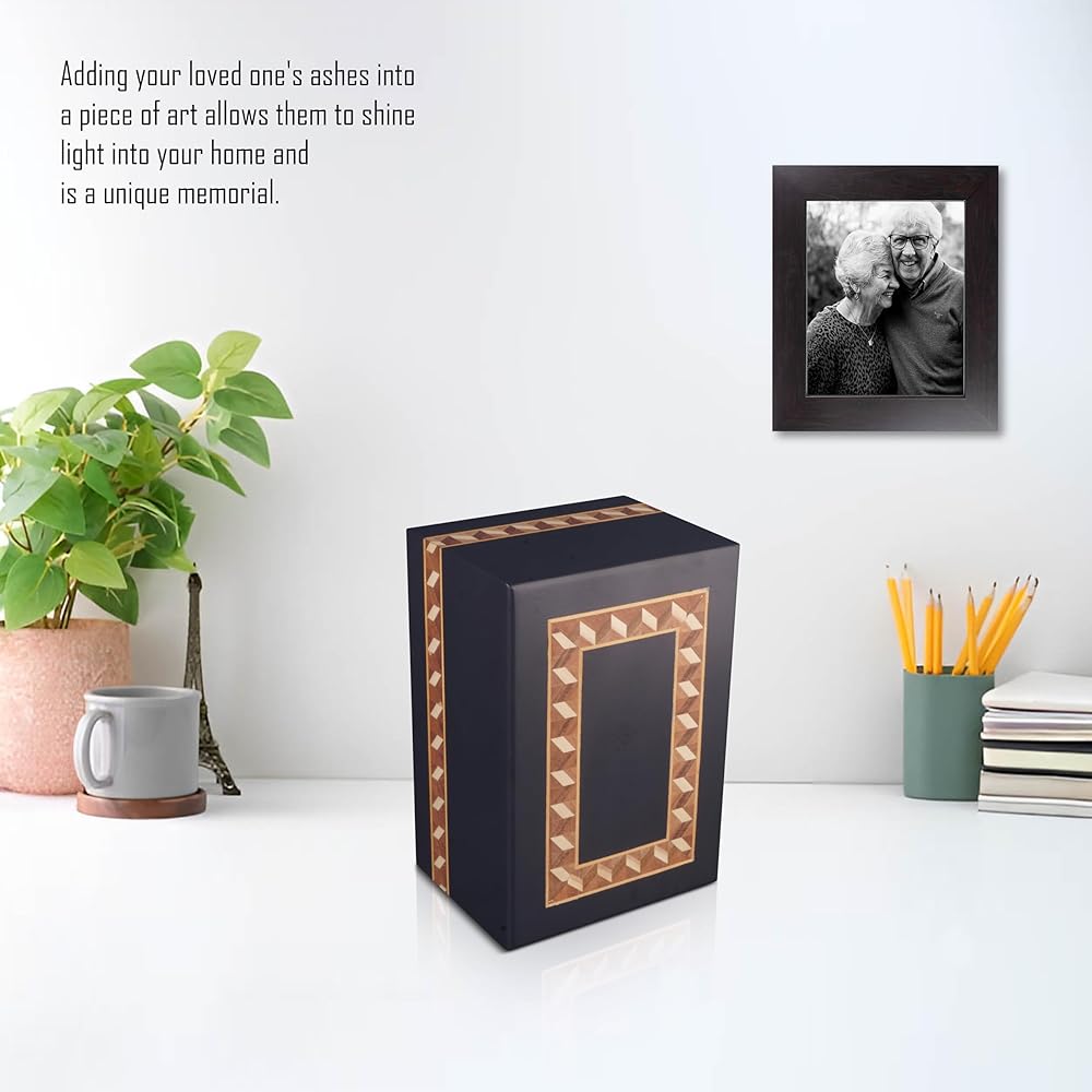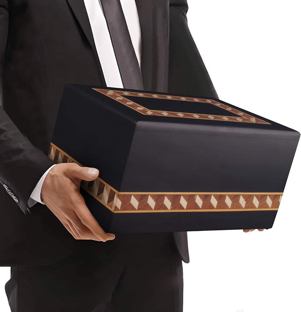 Premium Handcrafted Wooden Urn for Adult Ashes – Handmade with unique border design by skilled artisans, ensuring a unique tribute for your loved one, this large wooden cremation urn offers a timeless and respectful memorial for both men and women.