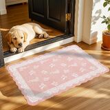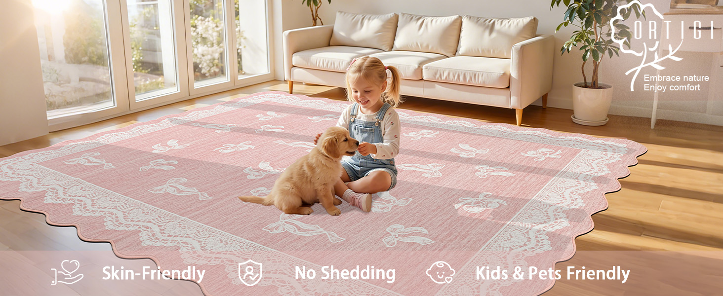 آمن ومريح: يوفر سطح الصوف الصناعي الوردي نعومة مريحة وصديقة للبشرة، بينما يوفر الجزء الخلفي القوي من مادة TPE مقاومة ممتازة للانزلاق من أجل وقت لعب آمن. كما يمنع تصميم الوبر المنخفض تشويش الباب، مما يضمن الأداء السلس