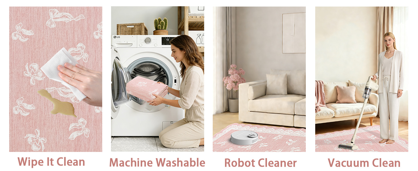 صيانة منخفضة: تتميز بتصميم ذو كومة منخفضة 0.2 بوصة، هذه السجادة ذات المساحة الكبيرة تقاوم حبس الأوساخ والغبار. تختفي انسكابات السوائل أو مطبوعات المخالب الموحلة مع بقعة سريعة. للتنظيف العميق، ما عليك سوى استخدام المكنسة الكهربائية أو وضعها في الغسالة (دورة باردة لطيفة). منخفضة الصيانة ومتينة، وهي مثالية للعائلات المشغولة التي لديها أطفال وحيوانات أليفة.