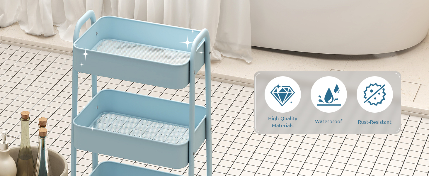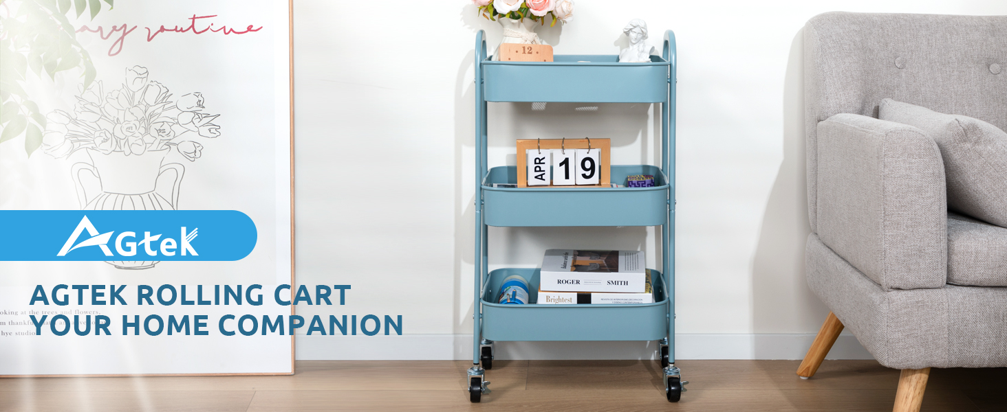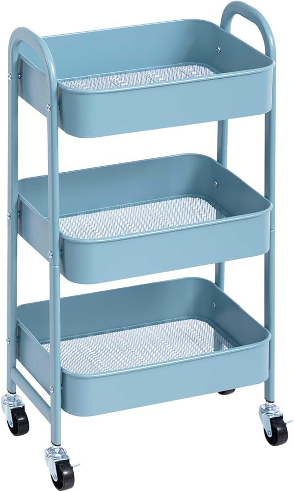 AGTEK عربة دوارة ذات 3 طبقات مع عجلات قابلة للقفل، تخزين معدني متعدد الوظائف، عربة تنظيم للمطبخ، المكتب، غرفة المعيشة، المكياج، الحرف اليدوية، استوديو فني، أزرق فاتح