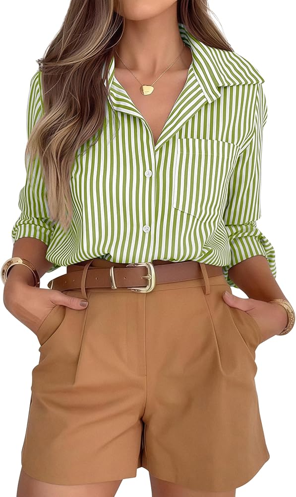 【متعدد الاستخدامات】 أكثر أناقة من البلوزات العادية، يمكن ارتداء هذا القميص بمفرده كبلوزة كلاسيكية أو كسترة خفيفة الوزن. مثالي للارتداء مع الجينز أو السراويل الضيقة أو البنطلونات أو التنانير، مما يمنحك إطلالات أنيقة متعددة دون عناء.