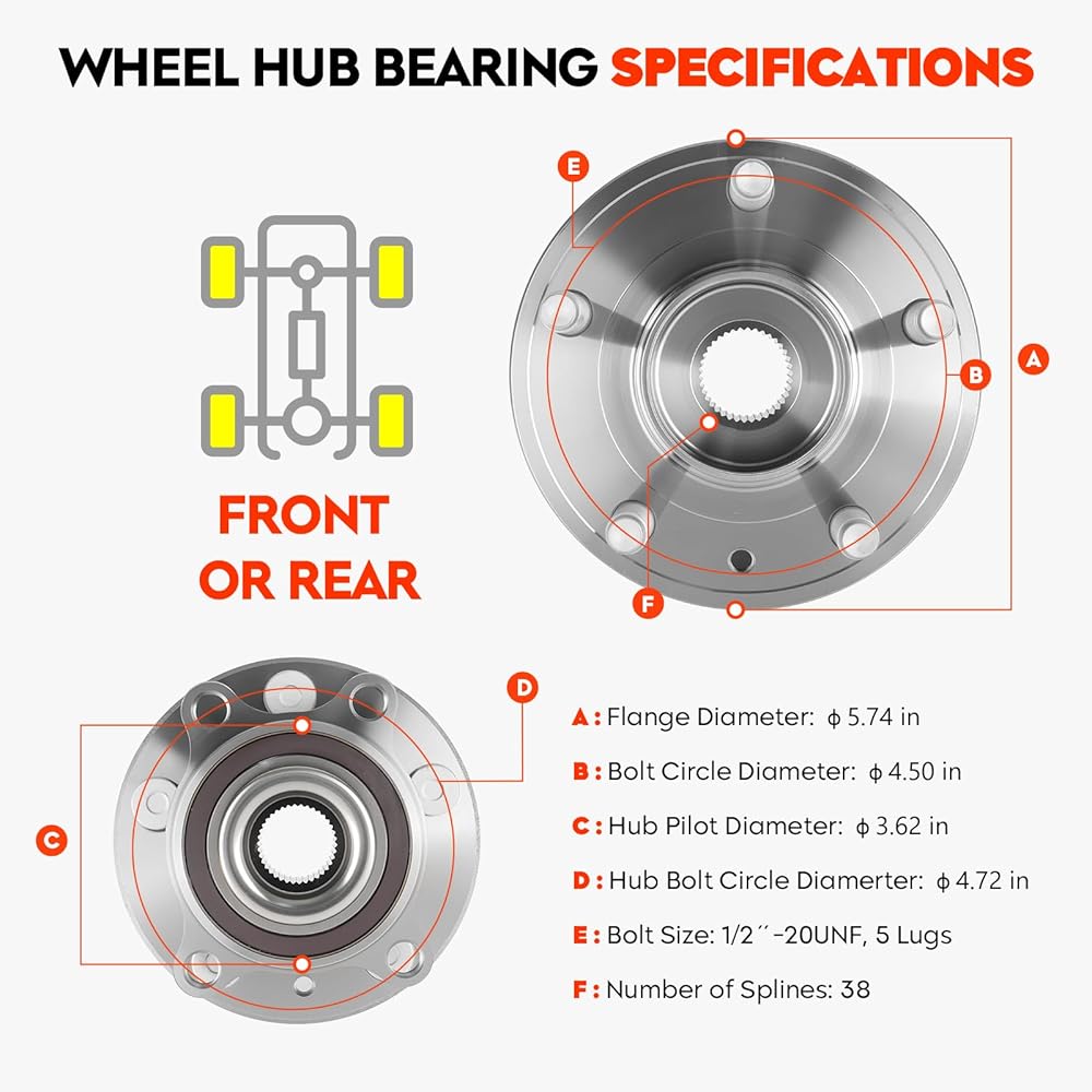 مجموعة محمل محور العجلة الأمامية/الخلفية تناسب Ford Explorer 2011-2018 (خلفي) لأداة اعتراض الشرطة (أمامية 2013-2019 جميع الموديلات 5 العروات استبدال 512460 قطعة واحدة
