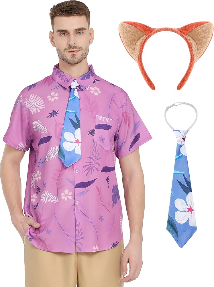 Halloween costume:The halloween cosplay set includes 1 floral print shirt, 1 superbly crafted fox, and 1 floral print tie—a three-piece set. Upon receiving the package, please check that all parts are included in the bag