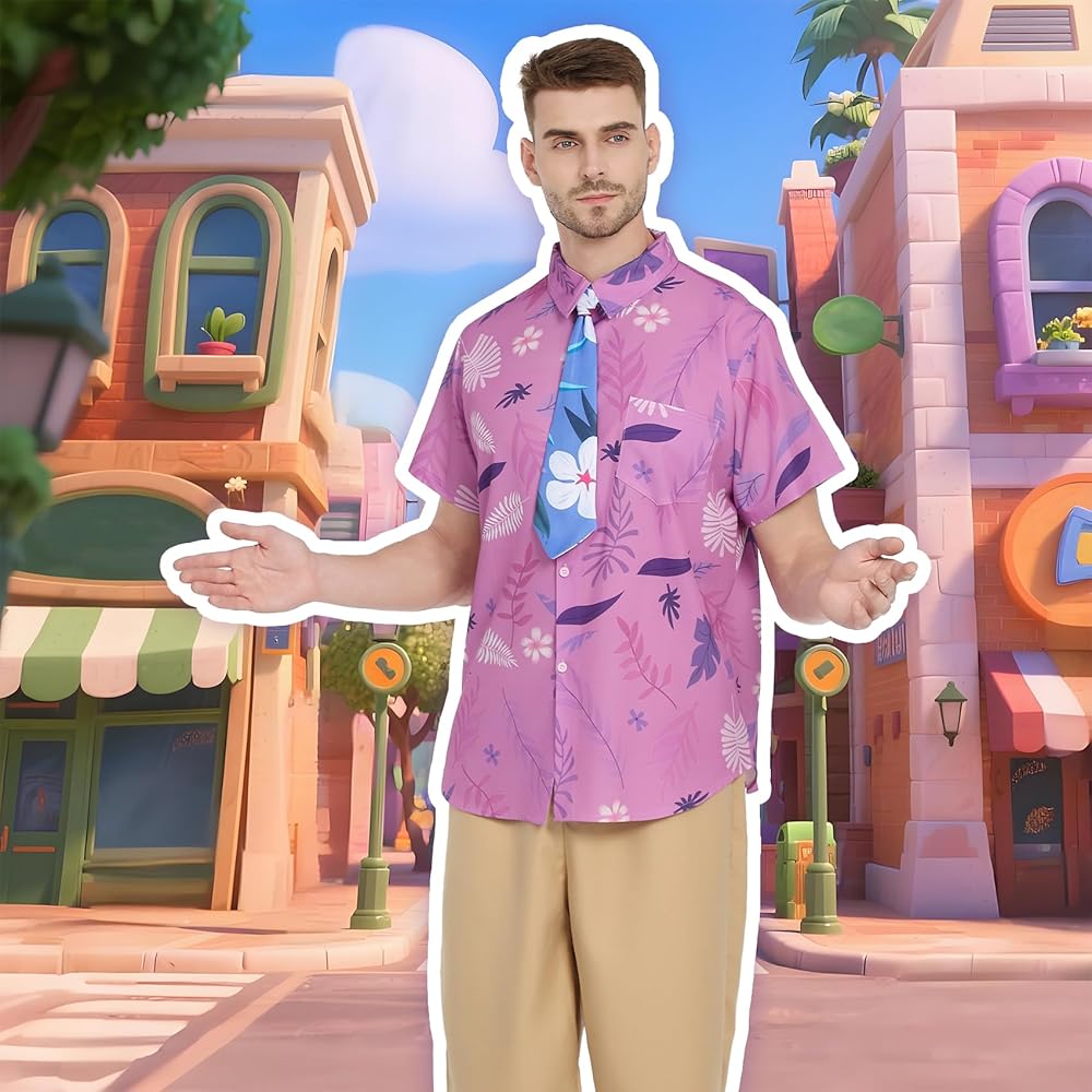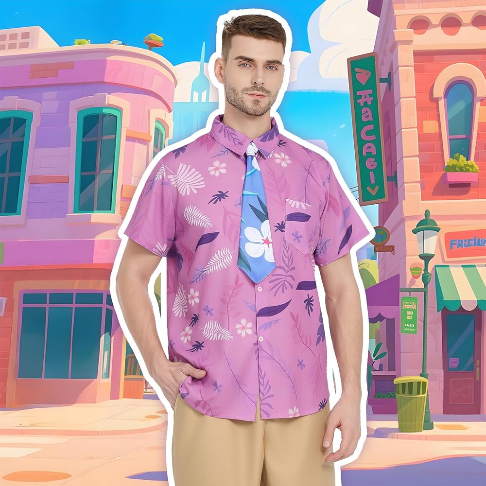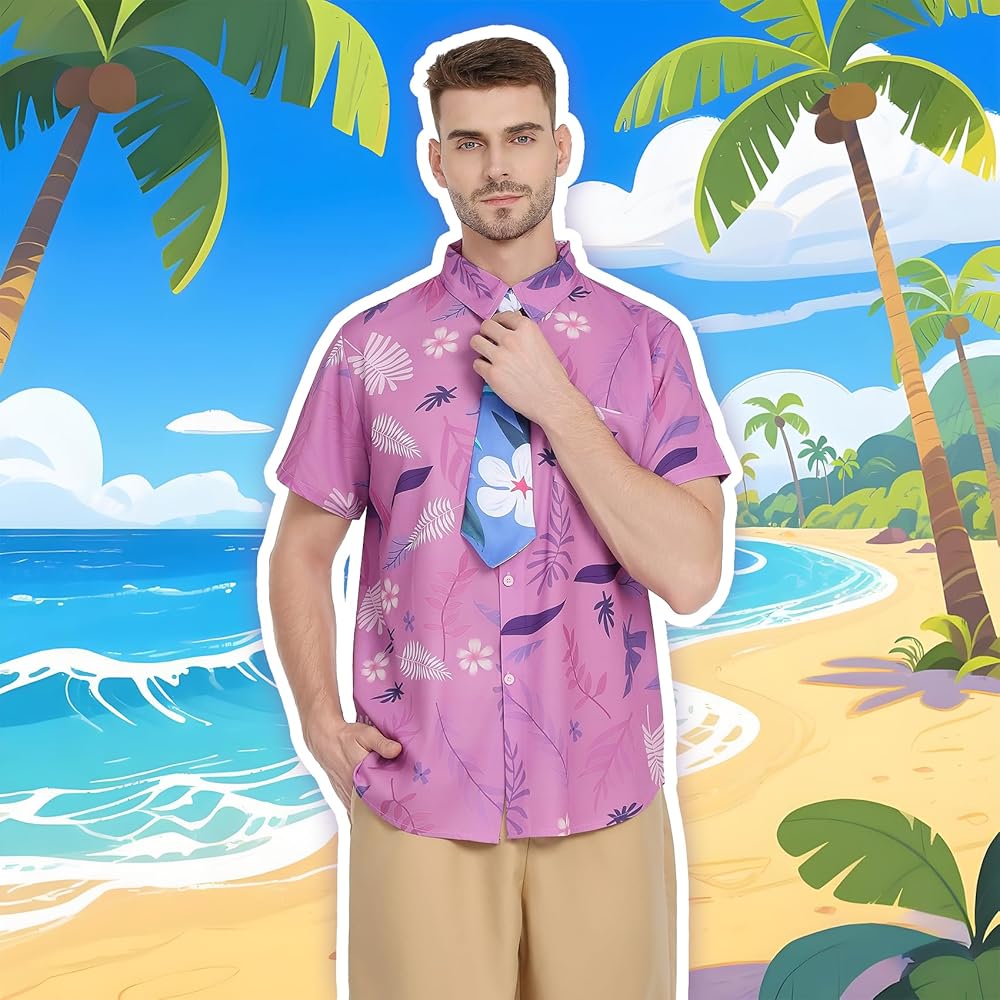 Classic Design:The tropical Hawaiian print shirt paired with a blue, red, and white striped tie strikes a balance between casual and fashionable. Just like the character it represents, it will never let you down when it matters most.