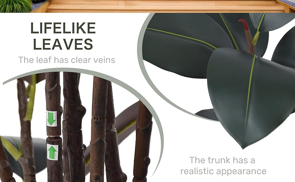 حرفية ناضجة: تم تصنيع هذه الشجرة المطاطية المزيفة باستخدام حرفية ناضجة، مما يسمح لها بالحفاظ على مظهرها الأصلي لفترة طويلة. سوف يرافقك لفترة طويلة، ويزين مساحتك دون الحاجة إلى الاستبدال المتكرر، مما يوفر لك المتاعب والطاقة