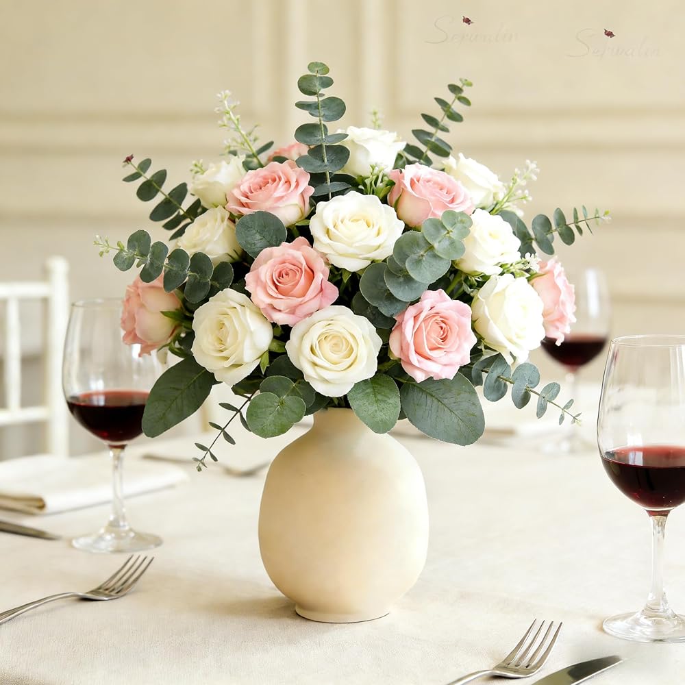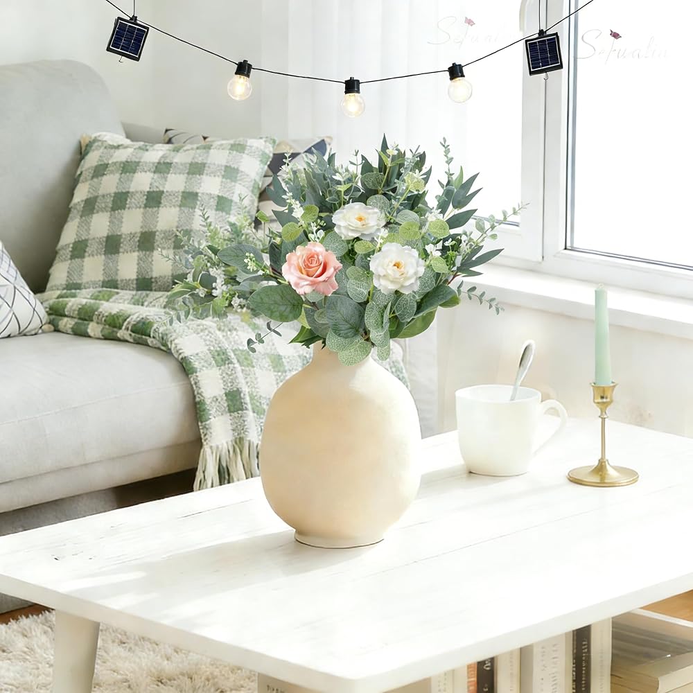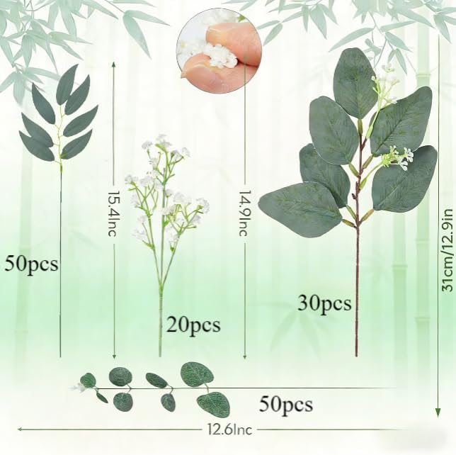 【Versatile Height for Creative Arranging】Each faux eucalyptus and baby's breath stem measures approximately 11.9-15.4 inches tall. This versatile size is ideal for creating custom bouquets, blending seamlessly with other floral arrangements, or elegantly decorating vases to add a touch of vitality to any room