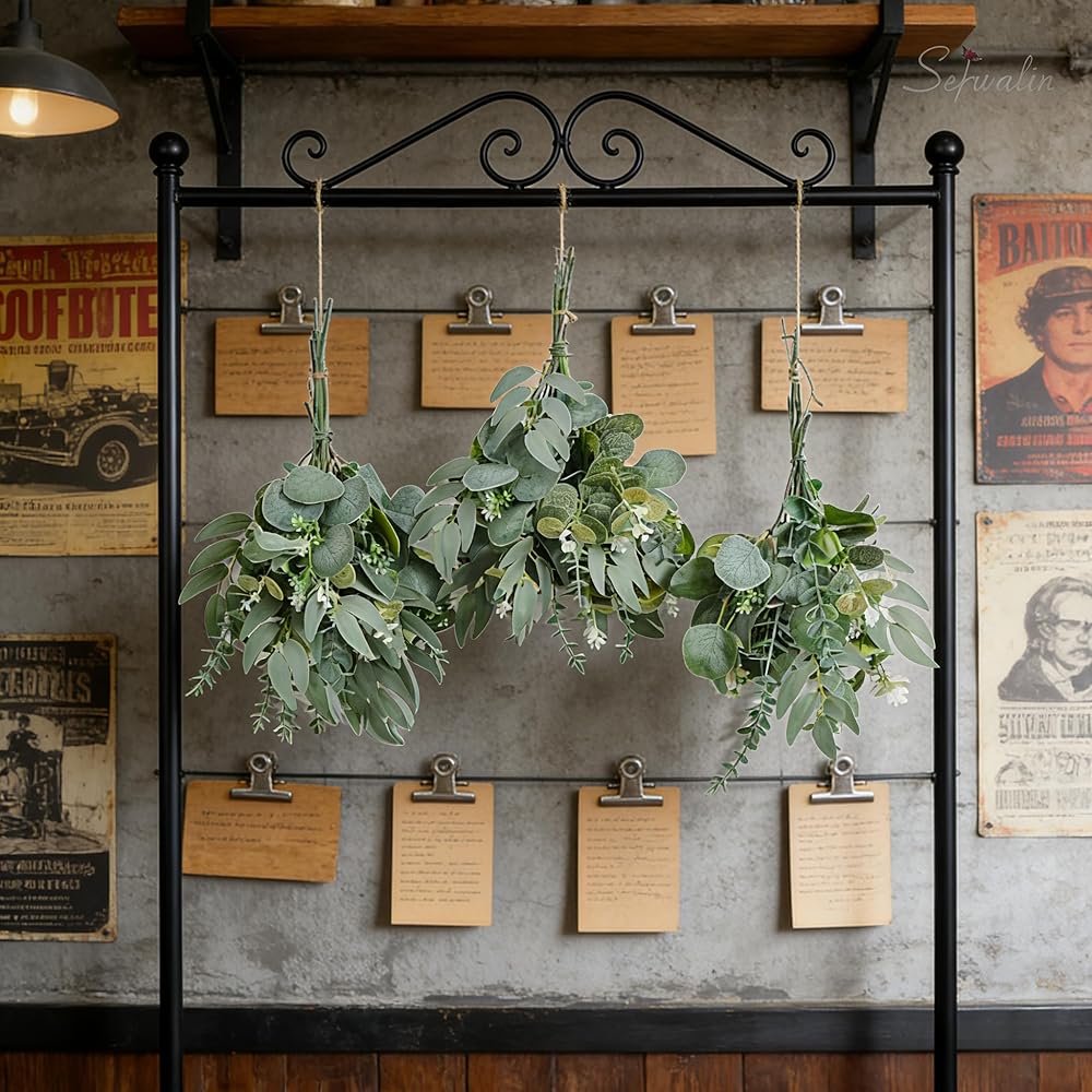 【Lifelike Silvery-Green Appearance】Our artificial eucalyptus stems feature a delicate, natural-looking white powder finish that mimics the authentic texture and hue of fresh silver dollar eucalyptus. This careful detailing ensures a highly realistic appearance that brings the beauty of nature indoors without any upkeep