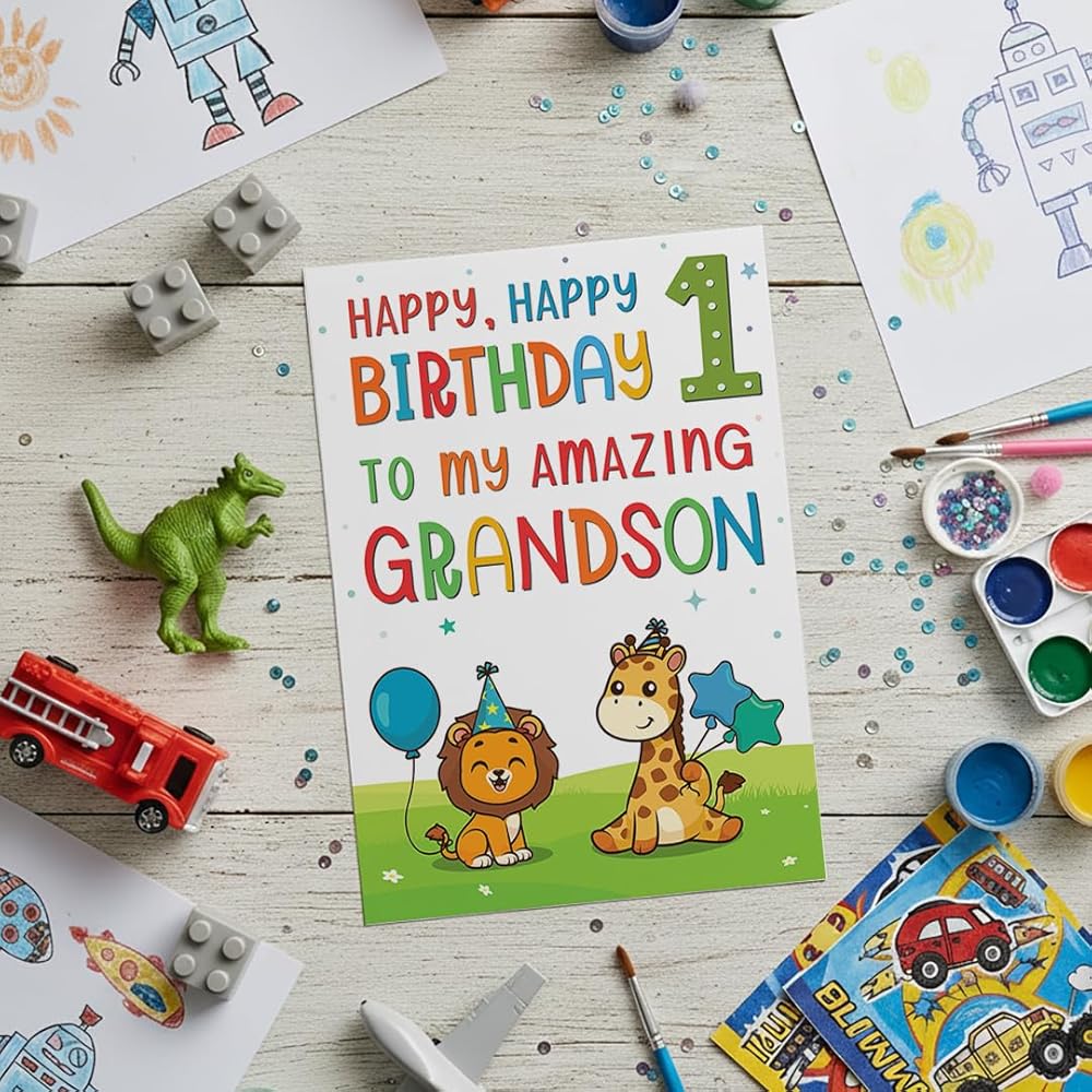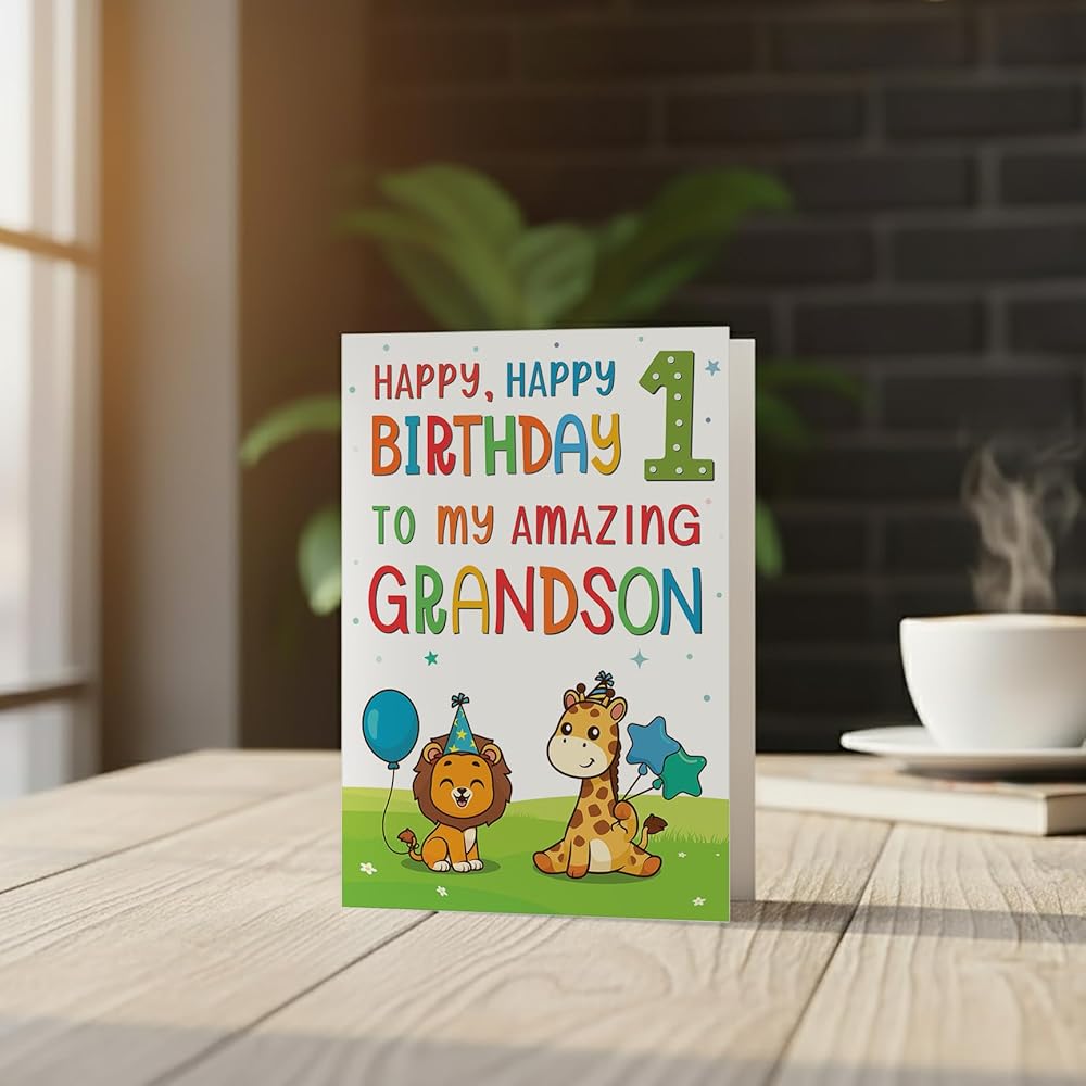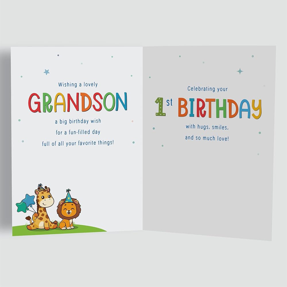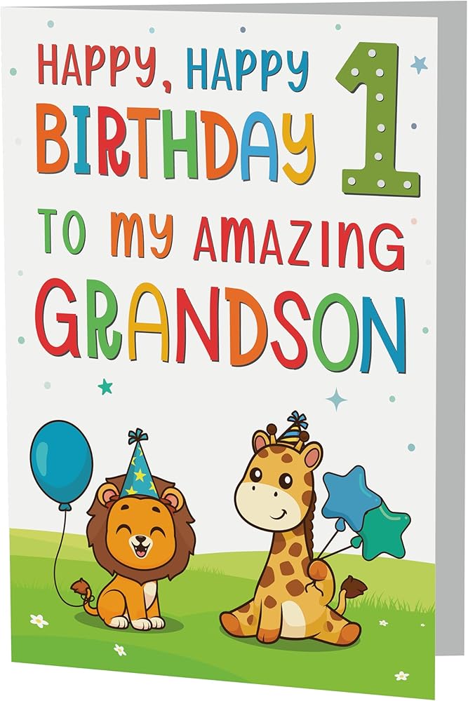 بطاقات عيد الميلاد الأول للحفيد - تصميم حيوان الغابة اللطيف - بطاقة تهنئة مميزة بحجم A5 في المملكة المتحدة