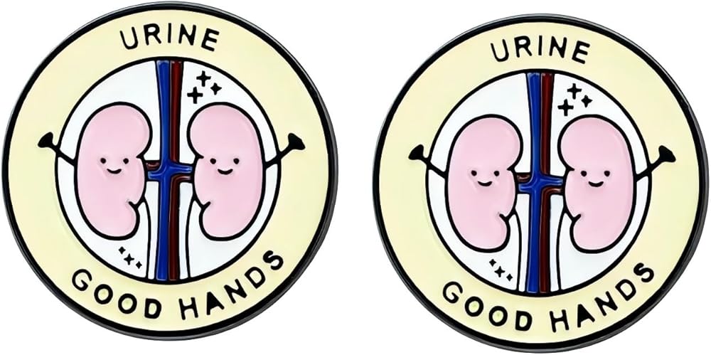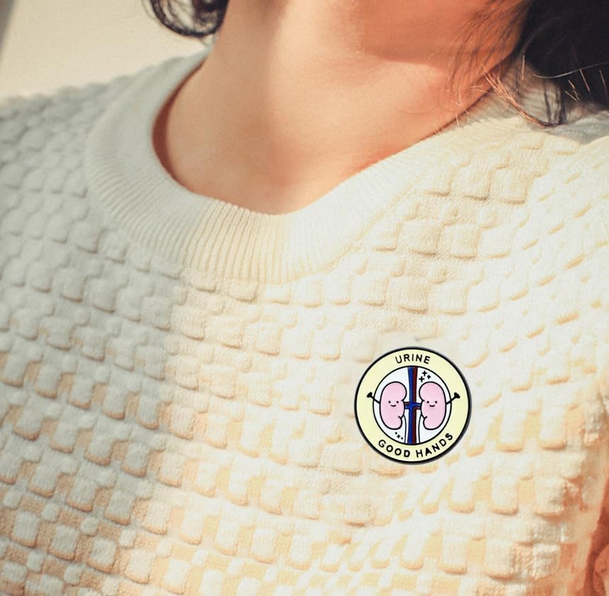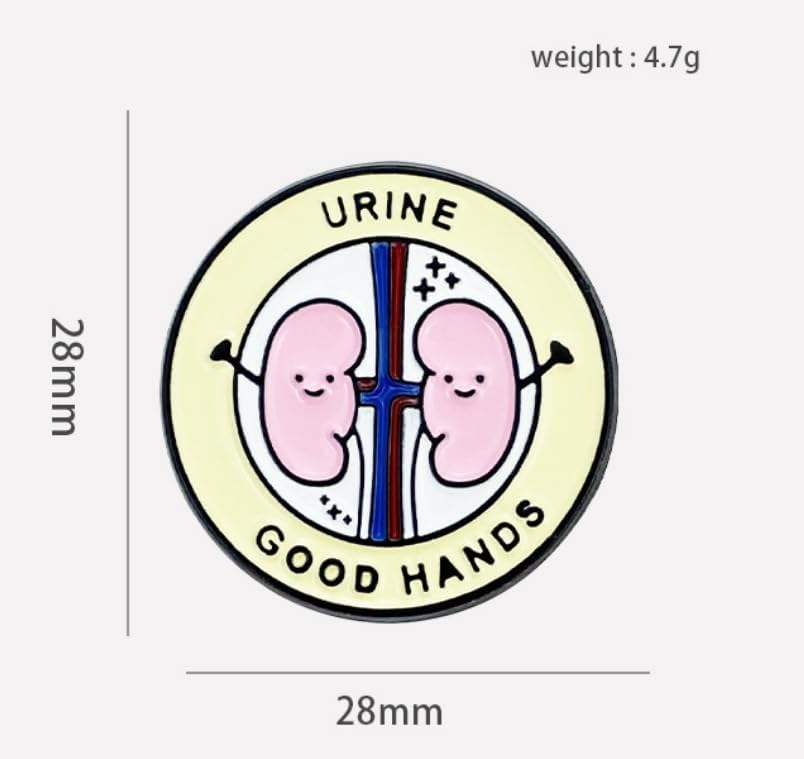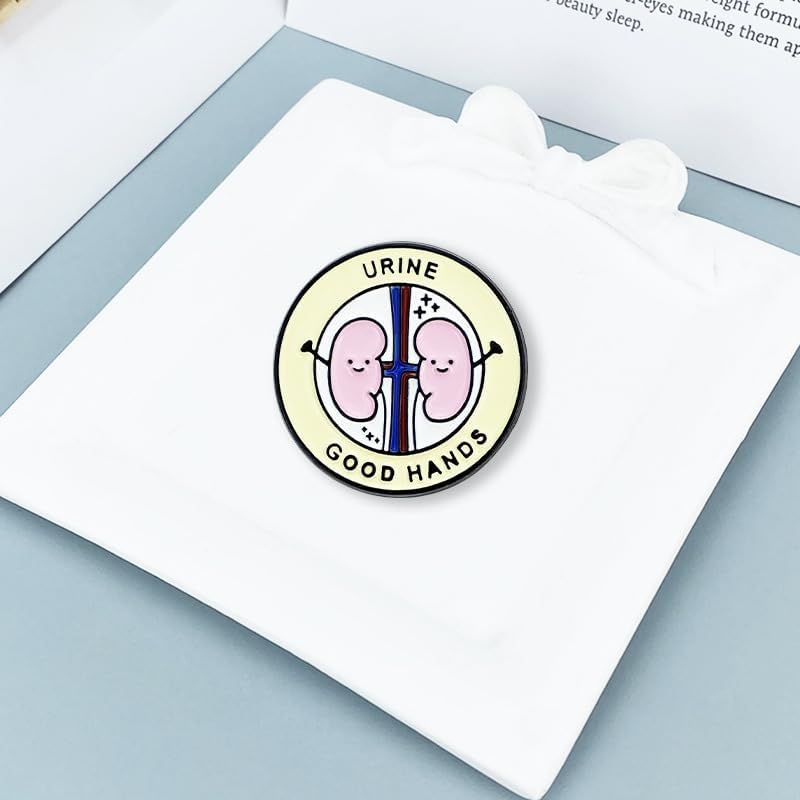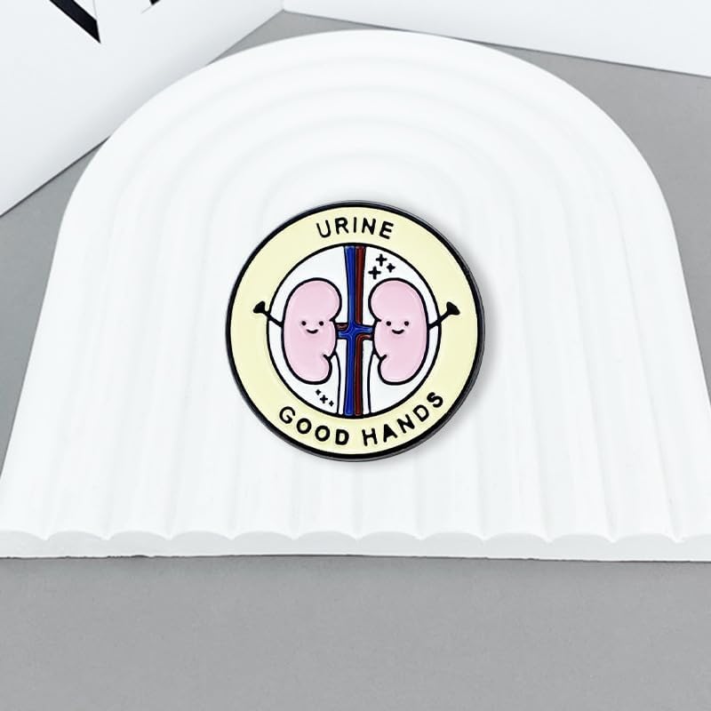 • Cartoon Kidney Health Design: Each pin features a cute cartoon kidney design with the humorous pun "URINE GOOD HANDS," perfect for expressing care and awareness about kidney health.