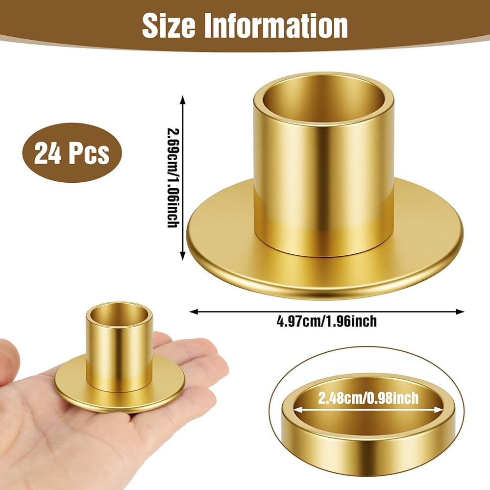 Packaging Contents: 24pcs Gold Metal Taper Candle Holders