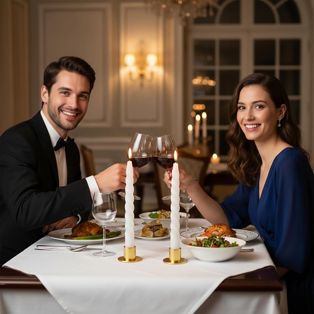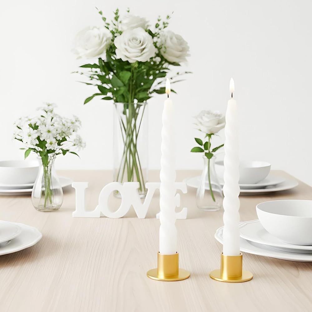 • 【Elegant Design】 These gold centerpieces feature a minimalist European-inspired design with clean lines and a refined metallic finish that complements various decor styles. The sleek cylinder top and polished details add of sophistication without being overly ornate, making these taper candlesticks suitable for both modern and classic interiors. The warm gold hue enhances ambient lighting, creating a romantic and inviting atmosphere that elevates table settings.
