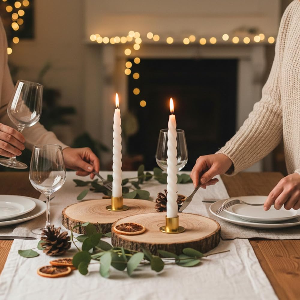 • 【Stable Design】 The short taper candle holders feature a weighted, wide base measuring approximately 1.96 inches in diameter, paired with a precisely sized candle cup of about 0.98 inches. This design ensures exceptional stability on various surfaces, preventing tipping, sliding, or shaking even on uneven tablecloths or mantels. The low center of gravity and balanced proportions keep these pillar candle holders securely in place.