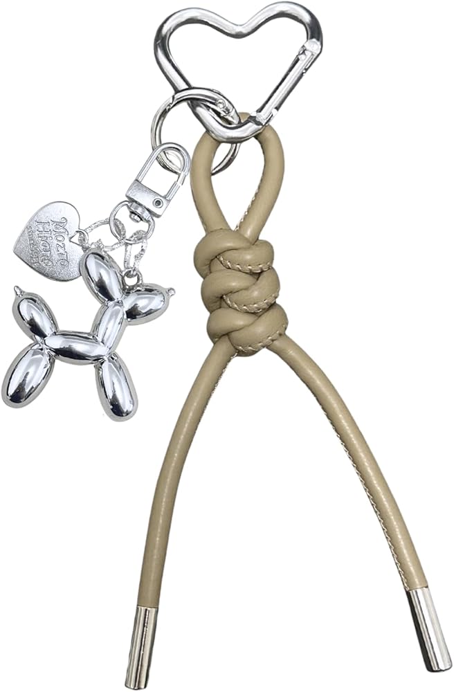 Add a playful pop of style to your favorite handbag with this charming balloon dog keychain. Crafted from leather with a trendy Y2K-inspired design, this whimsical accessory combines fashion and fun. The rope detail adds a sophisticated touch, making it a versatile bag charm that complements any purse or tote. Perfect for adding personality to your everyday accessories, this keychain features detailed craftsmanship that brings the balloon dog design to life. The durable leather construction ensures this charming accent piece will stay looking fresh while keeping your keys organized. Whether attached to your favorite handbag or used as a standalone accessory, this unique keychain adds a dash of playful sophistication to your daily style. Makes a delightful gift for fashion-forward friends or anyone who appreciates distinctive accessories with a touch of whimsy.