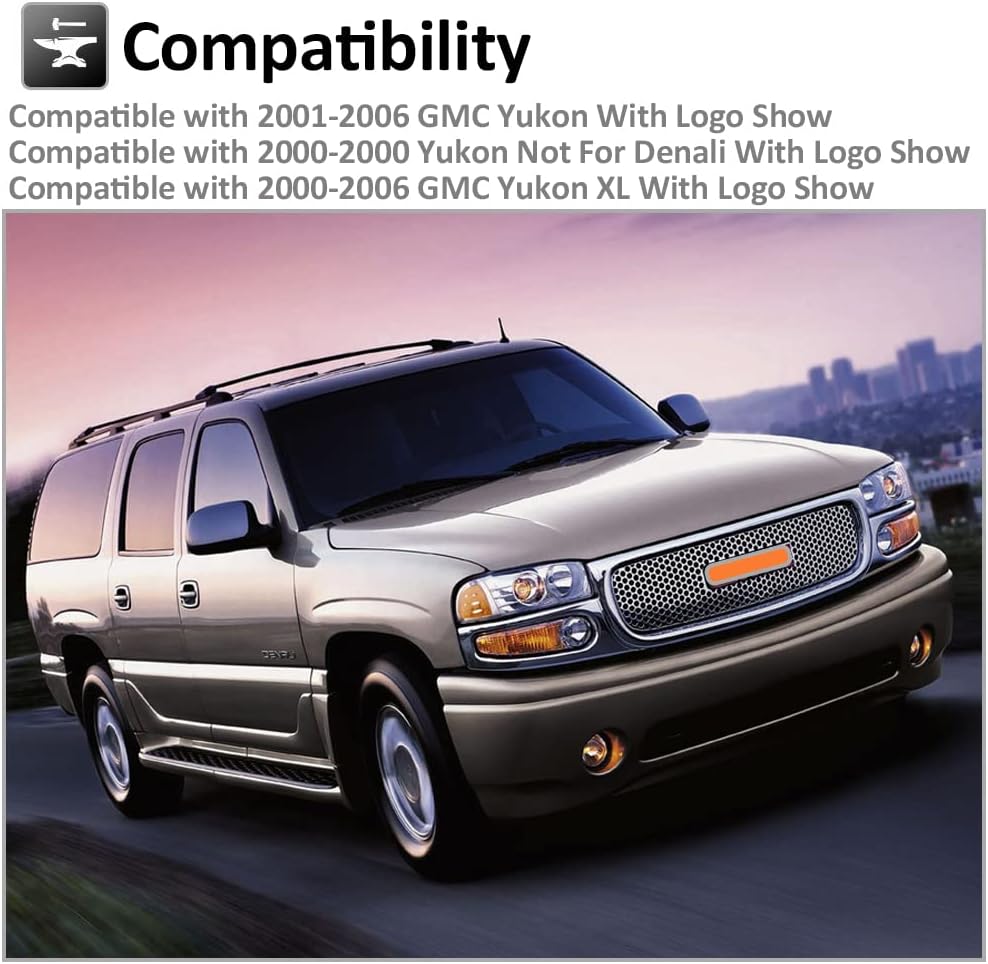 توافق الشواية: متوافق مع 2001-2006 Yukon مع عرض الشعار، متوافق مع 2000-2006 Yukon XL مع عرض الشعار، متوافق مع 2001-2006 Sierra فقط من أجل Denali مع عرض الشعار، متوافق مع 1999-2002 Sierra 1500 ليس للنمط الكلاسيكي مع عرض الشعار. هذه شواية مناسبة حسب الطلب، يرجى التحقق من ملاحظات التركيب الخاصة بسيارتك.