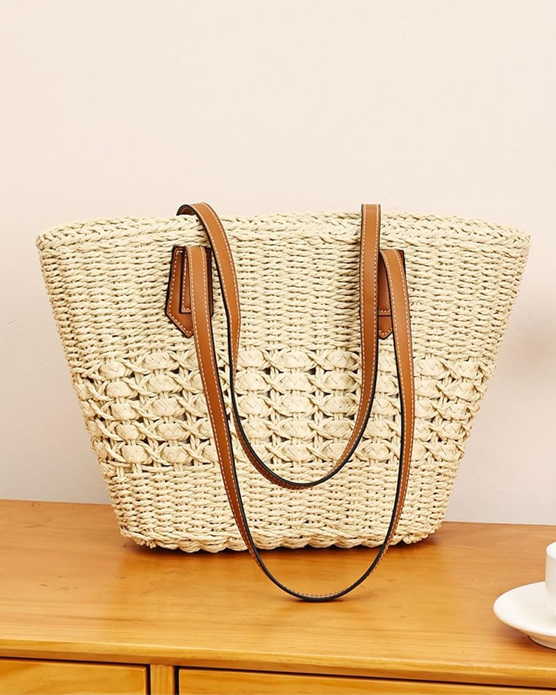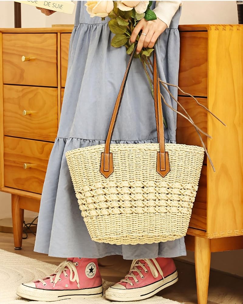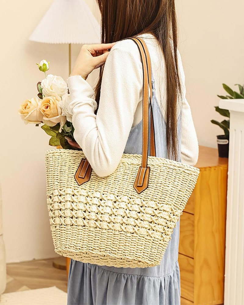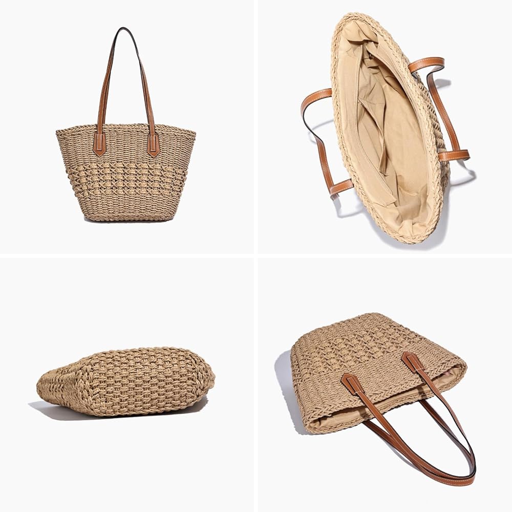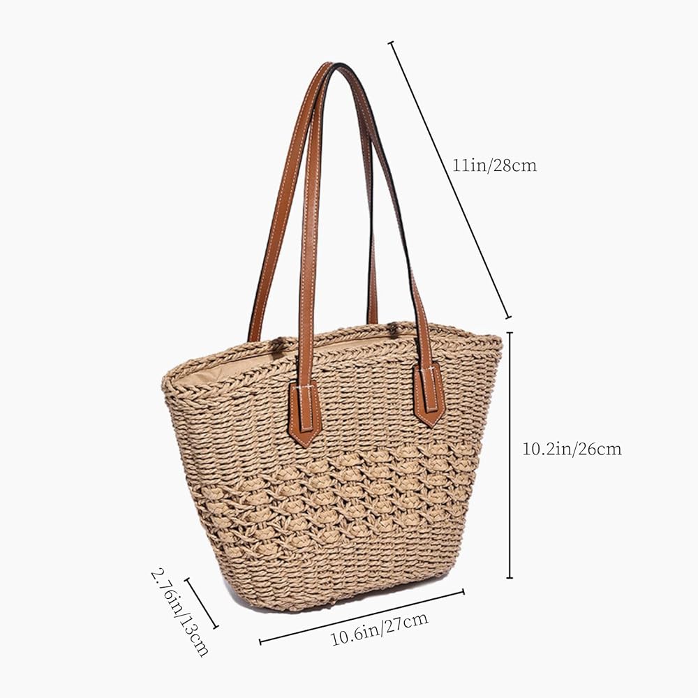 【Premium Natural Material】Hand-woven from high-quality paper straw and soft polycotton lining, this lightweight tote offers exceptional durability while maintaining its beautiful boho-chic appearance season after season.