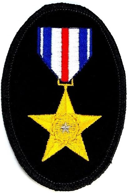 شريط النجمة الفضية المخضرم البيضاوي المطرز بخياطة عسكرية حديدية PWPM5013